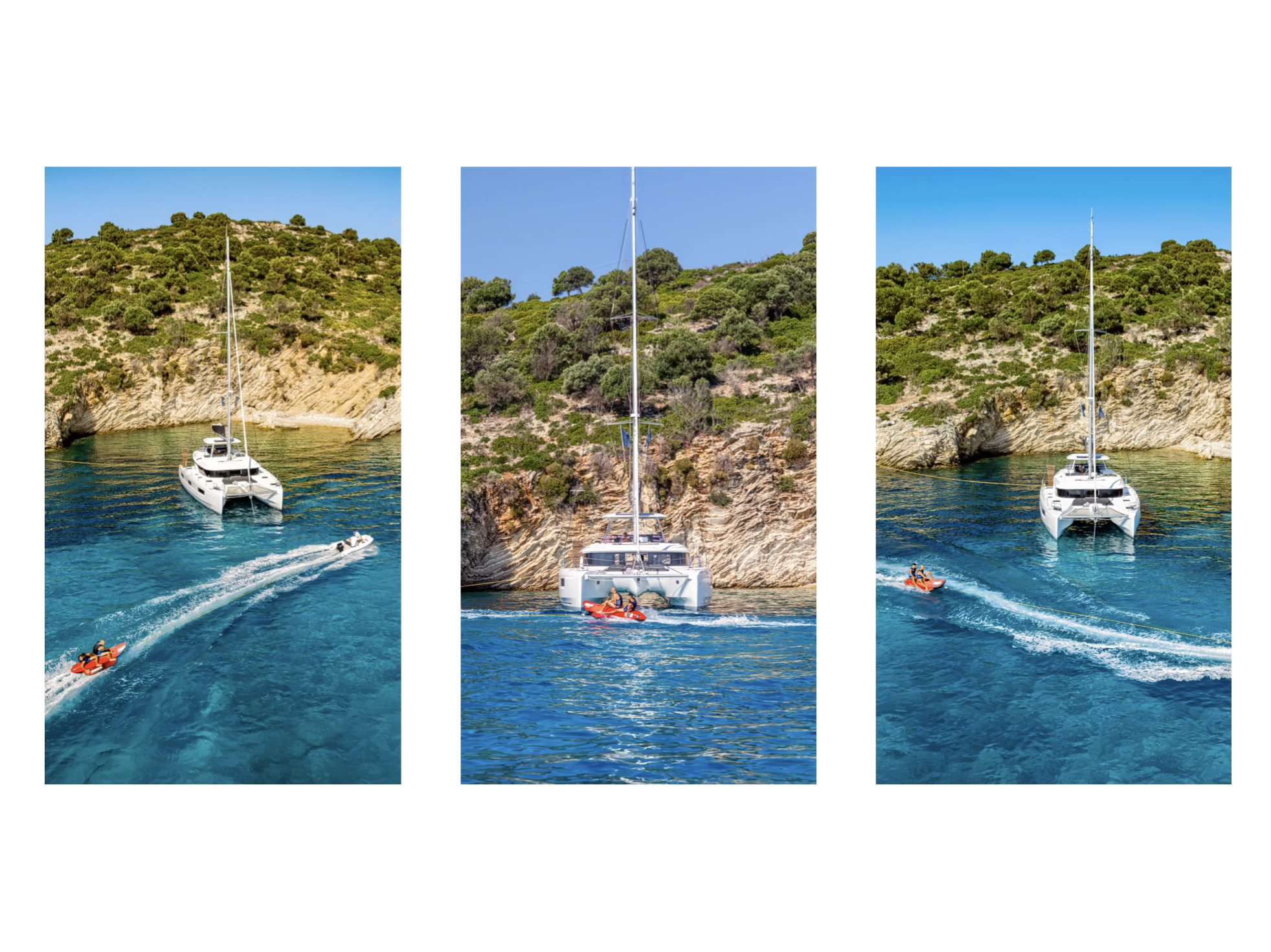 The layout and design of "WHITECAPS" were custom designed by Lagoon. WHITECAPS is an exceptional Lagoon 65 Catamaran. Due to the dedicated efforts of the WHITECAPS Owners and Crew, the vessel provides enhanced comfort, safety, and environmentally sustainable practices through various additional features, services, and modifications, such as: • 5G Wi-Fi Router, equipped with telephone functionality, capable of supporting emergency international calls. • Signature Guest cabins. Each of the five guest cabins features a distinct decor and is designated by a specific color: Orange, Blue, Black, Brown, and Green. Beach towels are coordinated to match the color scheme of each respective cabin. • Passarella for ALL. A Wide and Steady Passarella for all People including mothers with Baby Carts. • Whitecaps features an electric roof on the Fly-Bridge that can be opened or closed, and includes a 130-inch cinema screen with surround sound. Netflix and other streaming services are available, as well as an HDMI connector for laptops. • Make-Up Mirror in every Cabin. Behind the Bathroom Mirror you will find a 2-Face Make-Up mirror with Light.