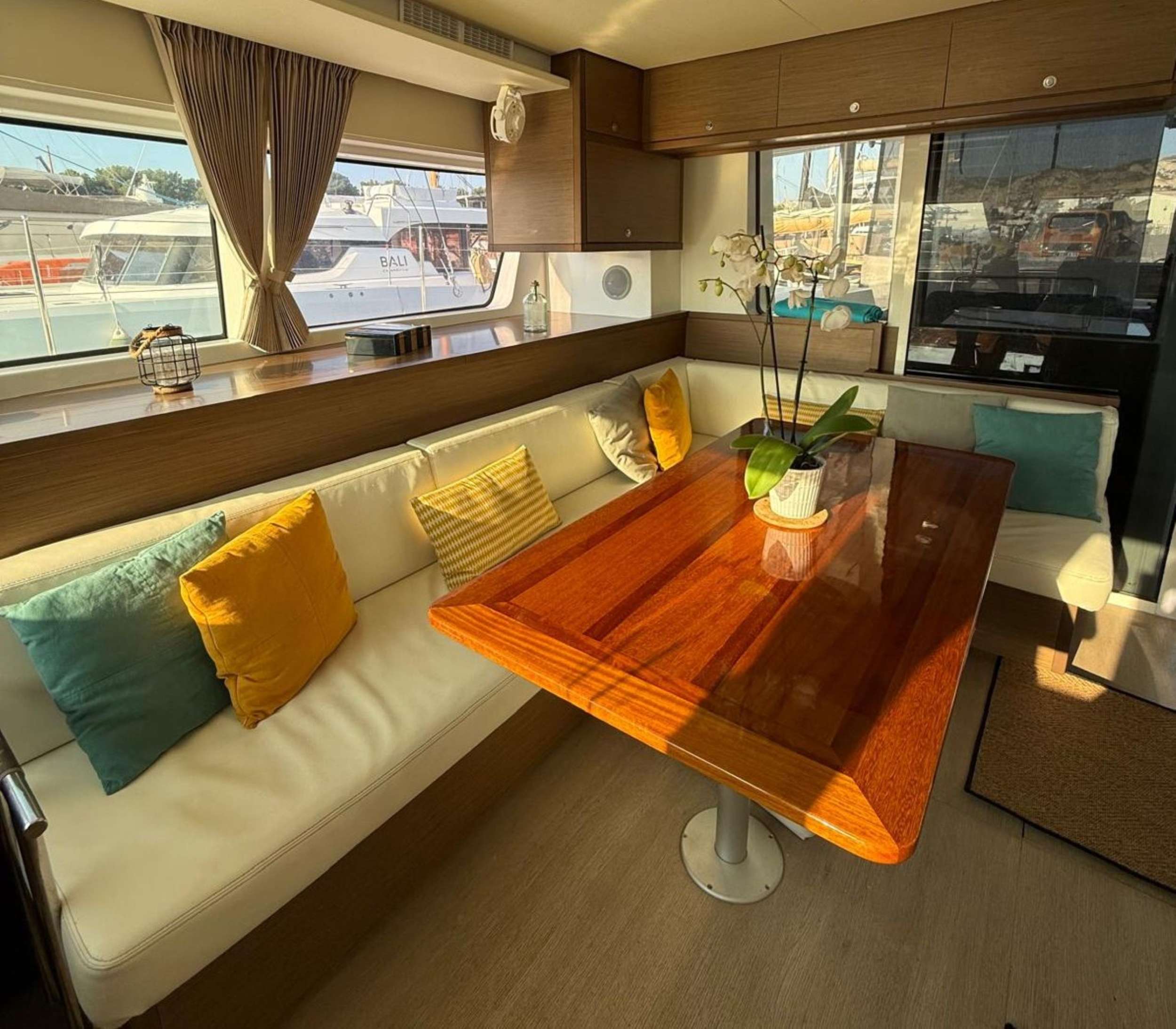 Lagoon 52 Sérénité boasts spacious volumes and great habitability for an outstanding life on board and ideal size for accessing secluded bays and coves. Her spacious exterior deck offers plenty of sunbathing space. The 4 double cabins, with ensuite bathrooms, are bathedin light thanks to the large portholes along the hulls.