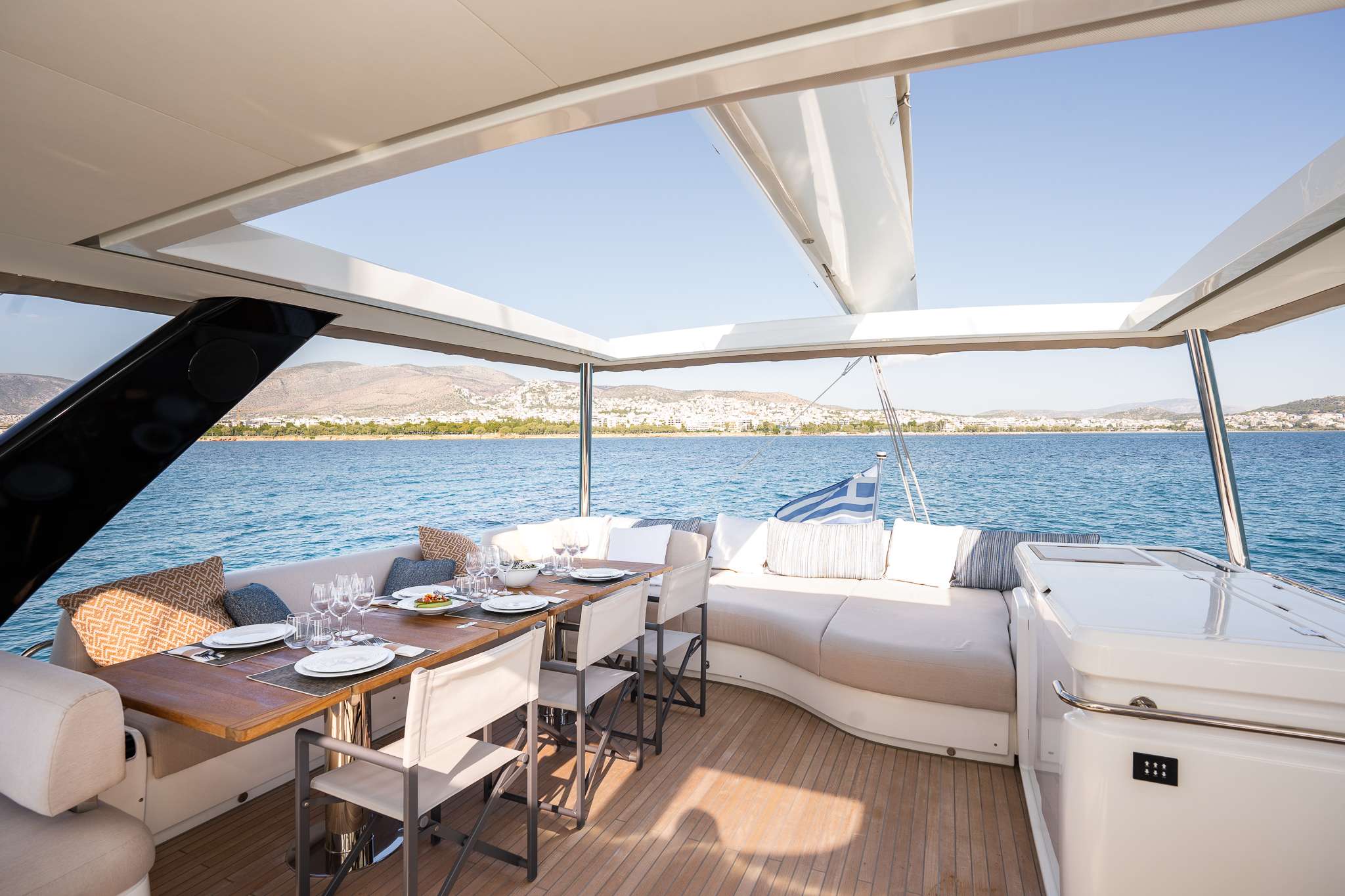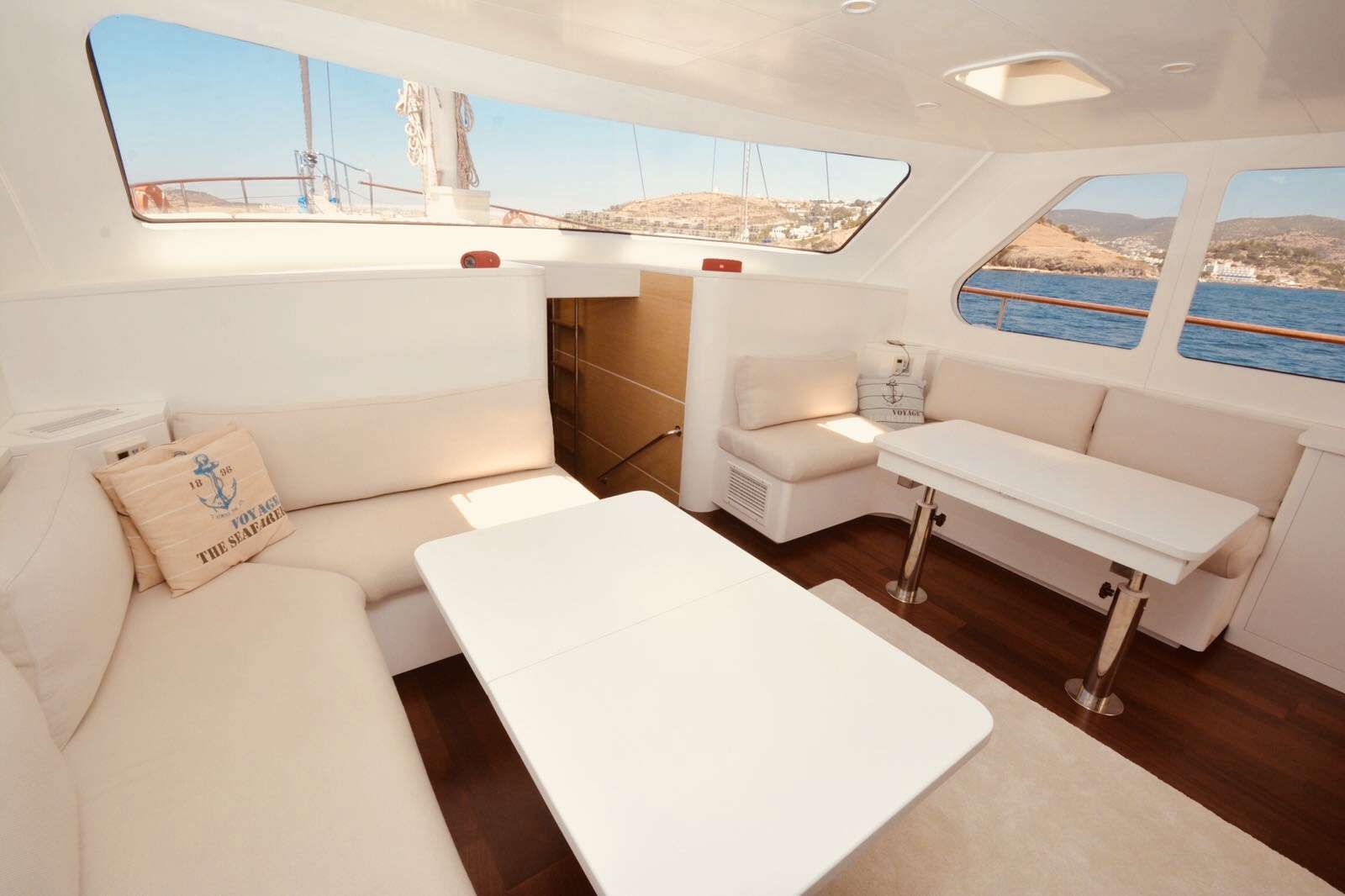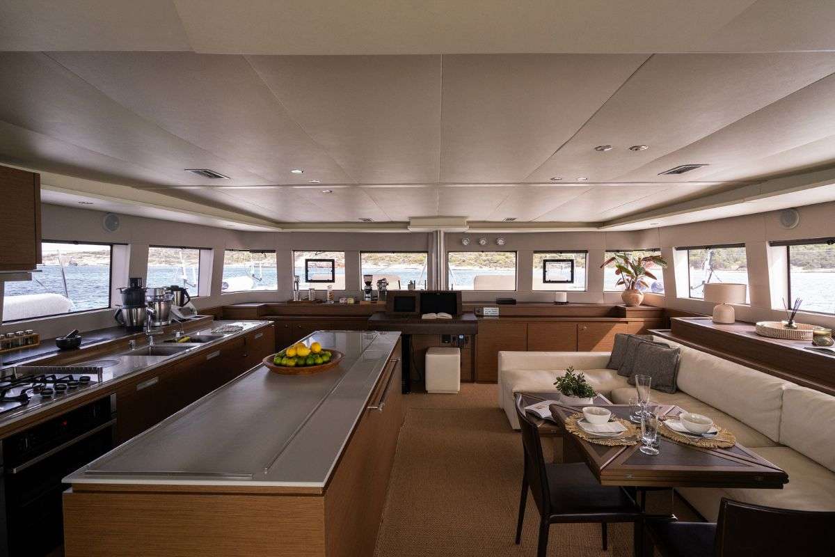 The layout and design of "WHITECAPS" were custom designed by Lagoon. WHITECAPS is an exceptional Lagoon 65 Catamaran. Due to the dedicated efforts of the WHITECAPS Owners and Crew, the vessel provides enhanced comfort, safety, and environmentally sustainable practices through various additional features, services, and modifications, such as: • 5G Wi-Fi Router, equipped with telephone functionality, capable of supporting emergency international calls. • Signature Guest cabins. Each of the five guest cabins features a distinct decor and is designated by a specific color: Orange, Blue, Black, Brown, and Green. Beach towels are coordinated to match the color scheme of each respective cabin. • Passarella for ALL. A Wide and Steady Passarella for all People including mothers with Baby Carts. • Whitecaps features an electric roof on the Fly-Bridge that can be opened or closed, and includes a 130-inch cinema screen with surround sound. Netflix and other streaming services are available, as well as an HDMI connector for laptops. • Make-Up Mirror in every Cabin. Behind the Bathroom Mirror you will find a 2-Face Make-Up mirror with Light.