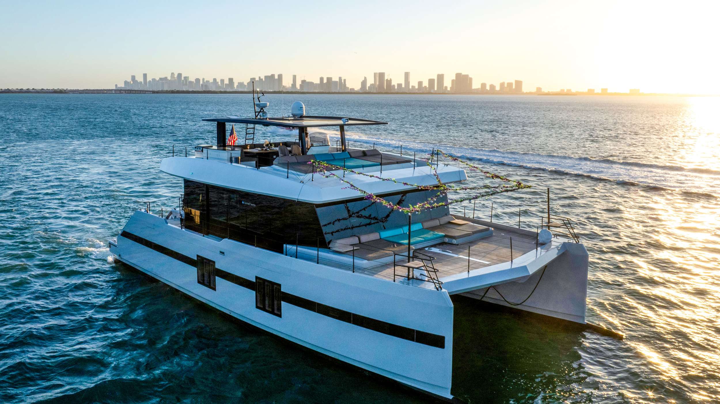 AGATA BLU is a stunning Sunreef 70 yacht designed for both luxury and performance. With its modern features and thoughtful design, it's the ideal choice for relaxing and exploring the sea. This yacht offers four spacious cabins, including pullout beds for children, making it perfect for families or groups of up to 10 guests. Its open and comfortable layout ensures plenty of room for everyone to enjoy their time on board. One of the standout features of the AGATA BLU is its large flybridge, spanning 50 square meters. This area is perfect for relaxing, dining, or taking in the views. The bow section also provides a spacious area for sunbathing and lounging. The yacht is equipped with a 55-inch LED TV in the saloon, a high-quality surround sound system with speakers throughout, and a BBQ grill and wine cooler on the flybridge. It also includes underwater lights for a magical ambiance in the evenings. AGATA BLU offers a smooth, safe, and luxurious sailing experience. She stands out with her stunning blue hull, a unique feature that adds elegance and charm to her sleek, modern design.This yacht is your gateway to unforgettable adventures on the water.