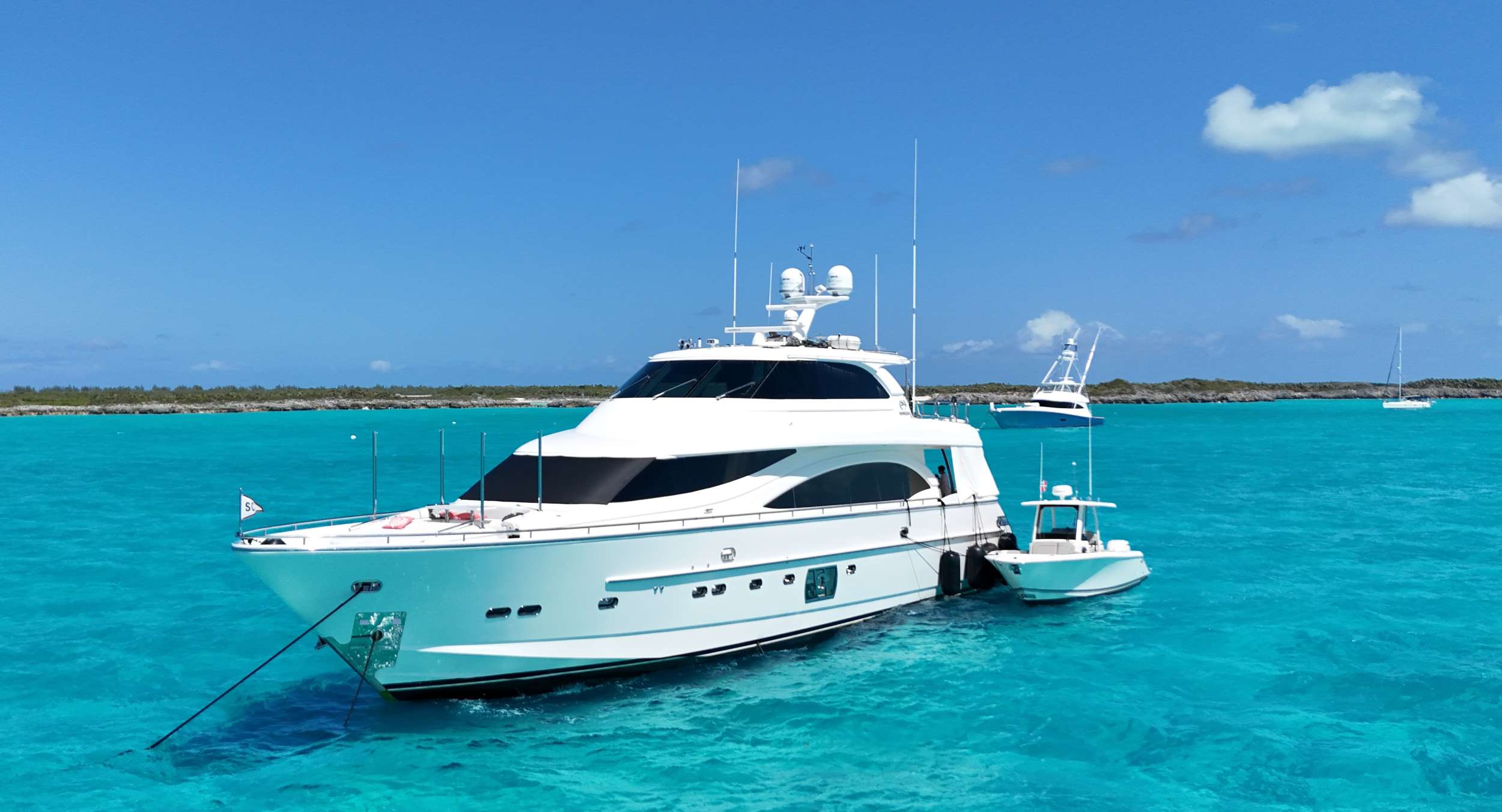 M/Y NAYA MARYN - Where Sophistication Meets Adventure Step aboard the stunning M/Y NAYA MARYN, a sleek and stylish Horizon E88 motor yacht that redefines luxury on the water. Designed for those who demand both performance and elegance, NAYA MARYN offers an unforgettable charter experience—whether you're cruising the intercoastal waterway of southeast Florida or island-hopping in the Bahamas. Unparalleled Comfort & Style Stretching 94 feet in length, NAYA MARYN boasts a modern, light-filled interior with panoramic windows, rich wood finishes, and plush, designer furnishings. Her open-plan salon and country kitchen style galley with dining create a welcoming space for socializing, while the expansive flybridge and aft deck offer ideal settings for alfresco dining, sunset cocktails, or simply soaking in the views. Accommodations Up to 8 guests can relax in 4 beautifully appointed staterooms, including a full-beam master suite with a walk-in wardrobe and en-suite bathroom, a VIP stateroom forward, and two versatile twin/double cabins. Every guest cabin features en-suite facilities, climate control, and luxurious touches to make you feel right at home on the sea. Performance & Toys With powerful twin MAN engines, NAYA MARYN cruises effortlessly at 18 knots, ensuring smooth passage between destinations. Her impressive toy box includes a jet ski, e-foil, paddleboards, snorkeling gear, and a 28' tender, ready to whisk you ashore or to hidden coves. Whether you're diving into crystal-clear waters or relaxing on the sun deck with a chilled drink, adventure and indulgence go hand in hand. Crew & Service Your experience is our priority. NAYA MARYN comes with a professional crew of 4, dedicated to providing impeccable service, gourmet cuisine, and personalized experiences tailored to your every desire. Charter NAYA MARYN - Because Every Journey Deserves to Be Extraordinary.