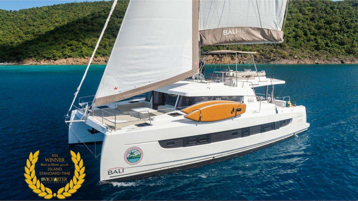 2024 Winner of "Best in Show" at the BVI Charter Yacht Society boat show! Island Standard Time will accommodate 8 charter guests in 4 spacious queen cabins. She has solar panels, air conditioning, water maker, ice maker, full sized refrigerator, a fully customizable menu, Caribbean made eco friendly and reef safe toiletries, coffee/espresso machine, rendezvous scuba diving, snorkeling gear, underwater scooters, subwing, wakeboard, stand up paddleboard, towable water tube, 10 ft. floating dock, pool noodles, fishing gear, board and card games, television in the salon, Fusion 3 Bluetooth enabled sound system.