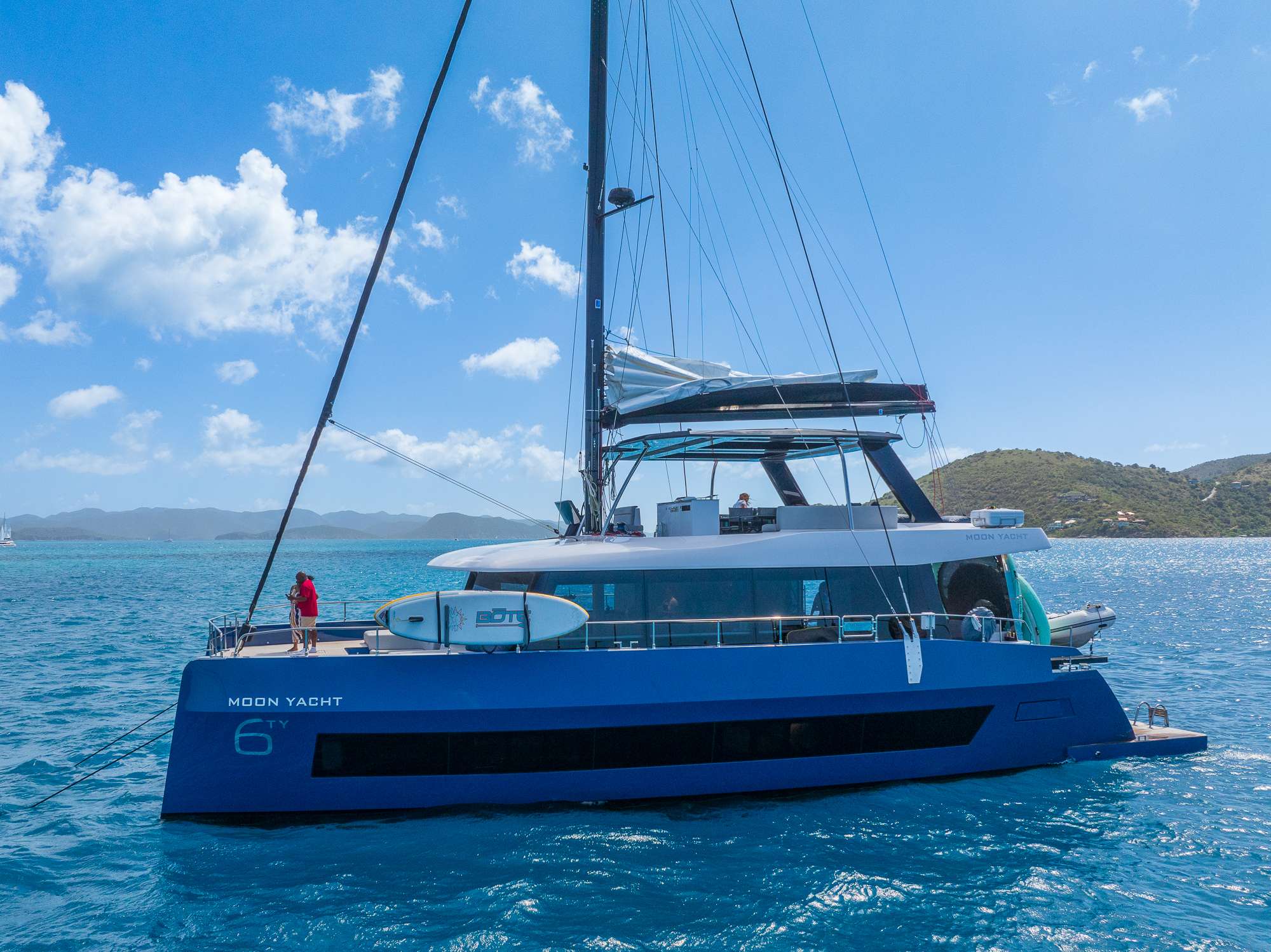 The Moon 6ty catamaran is a fusion of unparalleled luxury, precise technology, and elegance. Designed for the most discerning clients seeking not only unforgettable adventures on the water but also ultimate comfort and prestige. The MOON 6ty is a premium yacht that combines exceptional sailing performance with a modern, sophisticated design, offering the choice between a sailing and motor version. The interior of the MOON 6ty is a true feast for the senses—spacious, modern, and fully tailored to the owner's individual preferences. The selection of materials, including natural stone, sintered surfaces, and elegant upholstery, ensures that every part of the yacht forms a cohesive, luxurious whole. Thoughtful spatial arrangement, with attention to every detail, makes the MOON 6ty the perfect space for top-tier relaxation, where each element is unique and designed with passion. The exterior deck of the MOON 6ty is a space designed to satisfy every luxury lifestyle enthusiast. In the main aft cockpit, perfectly sheltered from the wind, you can unwind in the "al fresco" lounge area or relax on the comfortable sofa. This space seamlessly blends elegance with functionality—from the wide swim platforms that create a true beach club on the water, perfect for enjoying water toys or soaking up the sun. The MOON 60 flybridge is where elegance, spaciousness, and cutting-edge technology come together to create the perfect setting for both sailing and relaxation. A panoramic 360-degree view, plush seating, and a bar, make this a place where luxury meets nature. It is also the yacht's command center—equipped with modern navigation devices and control systems, allowing for effortless maneuvering and a seamless sailing experience. Advanced technology - precision and comfort The sailing version of the MOON 6ty features an innovative sail management system. All lines required for sail handling are led to a single location at the helm station, ensuring ease of use and convenience. This allows the entire crew to enjoy a comfortable sailing experience without worrying about complex maneuvers while maintaining a sense of space and tranquility on board. The MOON 6ty is a catamaran that seamlessly blends advanced technology with timeless luxury, designed to meet the needs of the modern sailor.