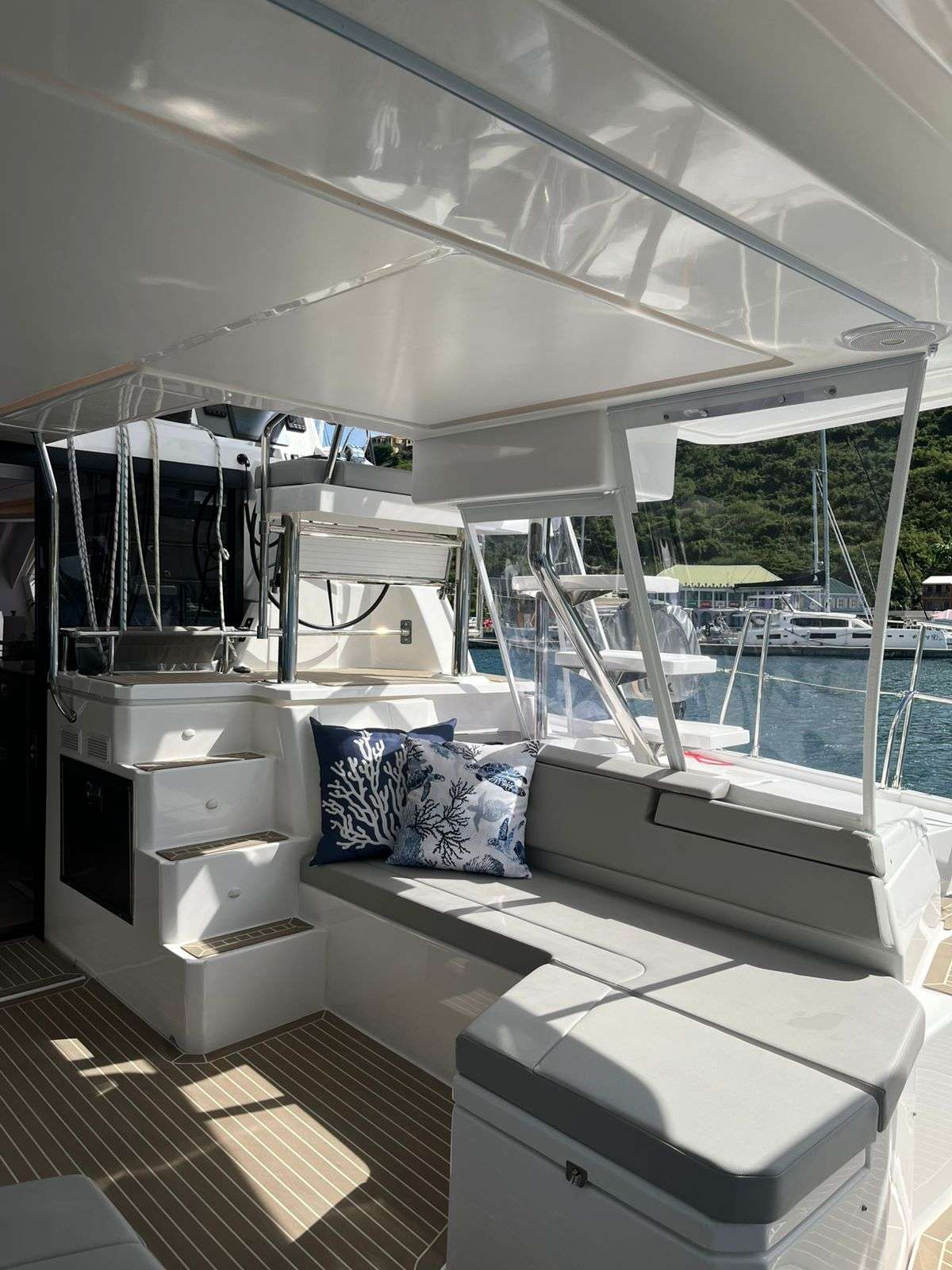 Step into a world where luxury meets the sea aboard LIVIN, a stunning Leopard 50, 2025 sailing catamaran designed for travelers who crave elegance, comfort, and unforgettable experiences. With sleek lines, sophisticated spaces, and seamless indoor-outdoor living, this yacht sets the stage for a dream charter in paradise. LIVIN features three beautifully appointed queen cabins, including a spacious master suite in the starboard hull. This private sanctuary offers an island-style/walk-around bed, generous storage, panoramic windows with breathtaking ocean views, and a luxurious en-suite bathroom complete with modern finishes and a separate shower. The airy salon is crafted for connection and relaxation, with panoramic windows and sliding glass doors that open wide to blend the interior with the shaded cockpit. A unique forward door leads directly to the foredeck, where sun loungers and trampolines invite you to soak in the sea breeze and sweeping views. The fully equipped galley allows your private chef to create gourmet meals with ease, while the open-air cockpit—with a large dining table and plush seating—is perfect for enjoying al fresco meals under the stars. Up top, the spacious flybridge offers yet another haven for lounging, sunbathing, or sipping cocktails as the sun dips below the horizon. Sailing aboard LIVIN is smooth, thrilling, and effortless. Outfitted with advanced sailing systems and a variety of premium water toys—including paddleboards, a floating mat, towable tube, Subwing, and high-end snorkeling gear—your days will be filled with both excitement and serenity. Whether you're relaxing in luxury or chasing adventure across turquoise waters, LIVIN offers a charter experience as unforgettable as the destination itself.
