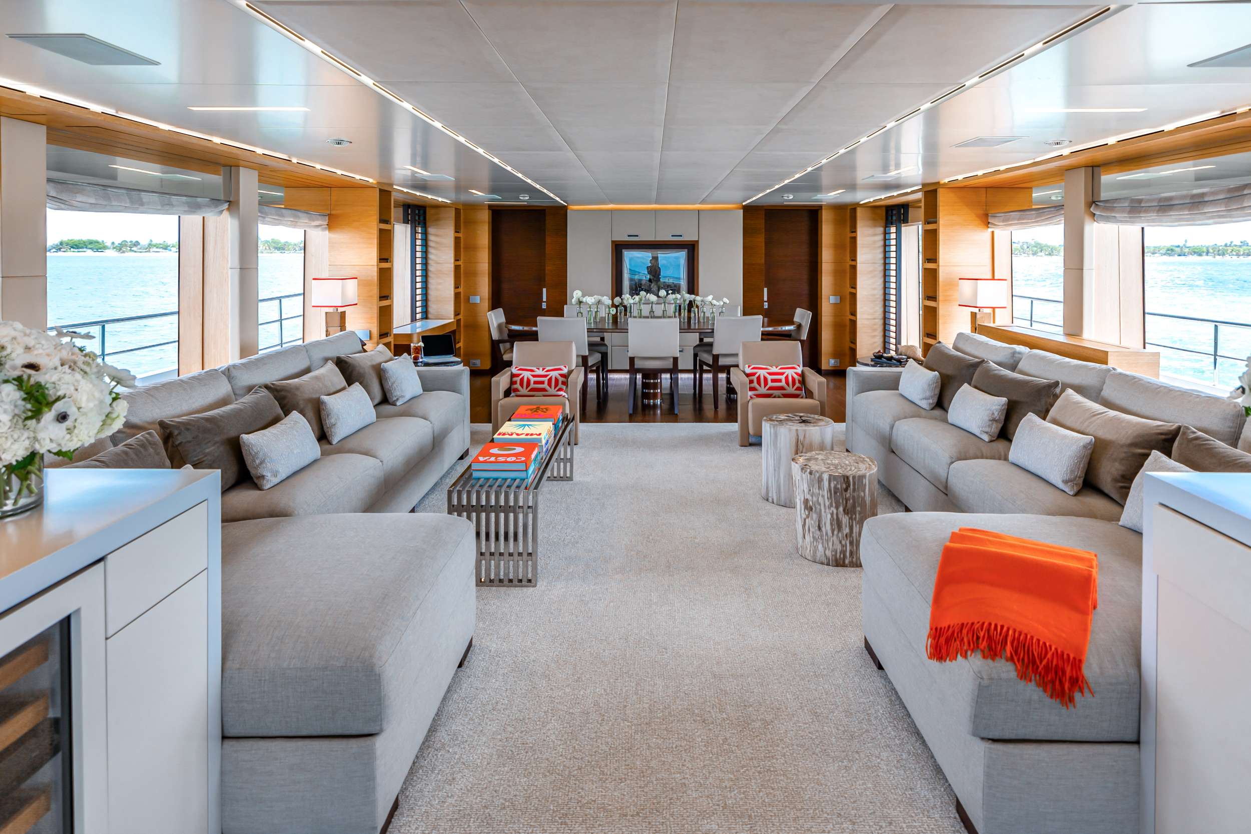 TEMPTATION, a 123 ft (37.49m) luxury superyacht is part of the Palmer Johnson 123 Fly Series and an optimal choice for those seeking a luxurious charter experience. TEMPTATION boasts a sophisticated interior and exterior crafted by Nuvolari & Lenard. Recognized as one of the chicest yachts in her size category, she offers accommodation for up to eight guests, including a main-deck master suite, a full-width VIP suite, and additional staterooms. TEMPTATION is adorned with timeless furnishings and various seating areas, ensuring both comfort and elegance. Beyond her exquisite interior, TEMPTATION's outdoor spaces are equally impressive. Guests can unwind in the beautiful Jacuzzi situated on her sundeck, providing breathtaking panoramic views. The yacht is equipped with a fully stocked wide selection of toys featuring paddle-boards, wakeboards, and two Yamaha 11000 deluxe Wave Runners for guests' enjoyment. Tailored for families and groups of friends seeking a luxurious charter experience, TEMPTATION combines style, comfort, and recreational amenities.