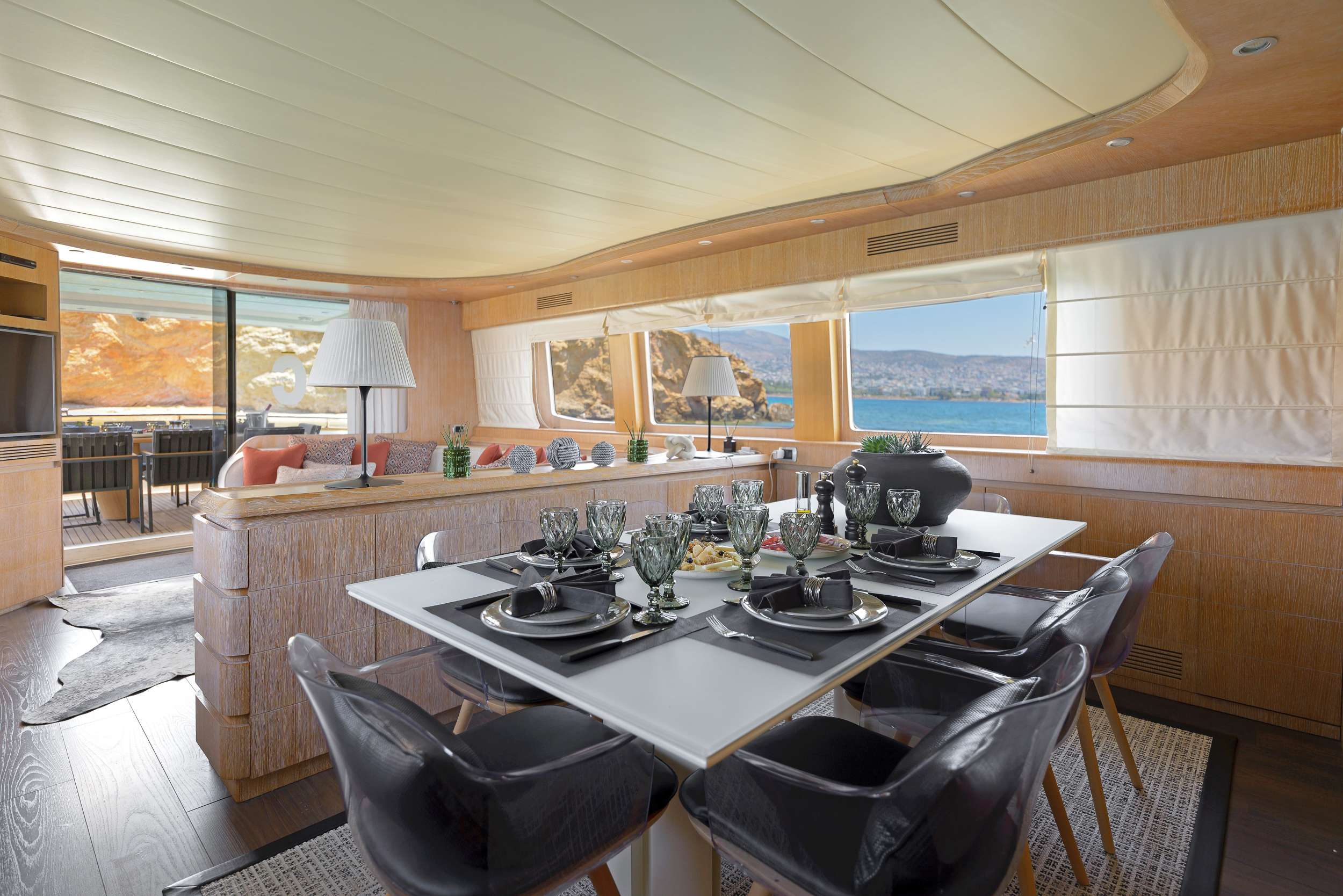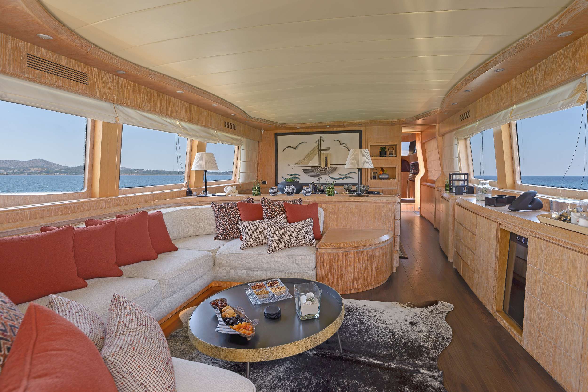 Boasting a host of fabulous amenties and a classic interior, OLA is tailor made for elegant charters. Relax on her sunpads, dine beneath the shade of the canvas bimini or hop aboard her tender for a ride, and let your cares slip away. Refitted in 2021, OLA offers guest accommodation for up to 8 guests in 4 comfortable cabins. The bed configuration includes 4 singles in 2 twin cabins and 2 king size beds in 2 in one Master Suite and one VIP stateroom. She is also capable of carrying up to 3 crew onboard to ensure a relaxed luxury yacht charter experience. Built with a GRP hull and GRP superstructure, OLA boasts impressive speed and great efficiency thanks to her planing hull.