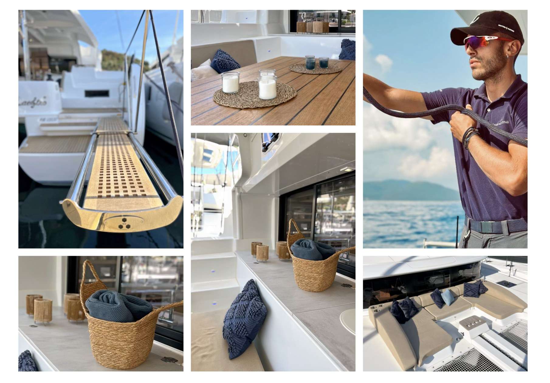 Step aboard M LEGACY, a stunning 2024 46' Bali sailing catamaran, designed to provide unforgettable adventures in the Bahamas. With four spacious cabins, she accommodates up to 8 guests in luxurious comfort, offering the perfect balance of performance, elegance, and relaxation. The name M LEGACY reflects the belief that the greatest gift we can offer is cherished memories and extraordinary experiences shared with loved ones. More than just a yacht, M LEGACY represents a way of life—one that embraces adventure, connection, and unforgettable moments. The “M" also honors Marguerite, Maxence, Marie-Pascale, and Maxime, a family passionate about sailing and sharing their love for the sea with others. From the moment you arrive, your experience is seamless and stress-free. Private transportation from the airport in Nassau (approximately 30 minutes) is arranged for your arrival and departure, ensuring a smooth transition to your dream getaway. Once onboard, you'll be welcomed with handcrafted cocktails, gourmet appetizers, and a warm, inviting atmosphere. Prior to your trip, the dedicated onboard chef will work with you to tailor meals to your preferences, ensuring every dining experience is perfectly curated to your tastes. Designed with both style and comfort in mind, M LEGACY features the OpenSpace concept, a hallmark of the Bali 4.6 design. Expansive openings and the innovative “Bali door" create a seamless indoor-outdoor flow, allowing natural ventilation and abundant light to enhance your experience. The spacious saloon and cockpit provide ample seating and relaxation areas, perfect for socializing, dining, or simply soaking in the stunning ocean views. Below deck, four well-appointed cabins offer air conditioning, en-suite bathrooms, and thoughtful touches to ensure maximum comfort. Whether you're exploring the turquoise waters of the Bahamian archipelago, savoring chef-prepared cuisine, or simply unwinding in the Caribbean breeze, M LEGACY is your gateway to an unforgettable sailing experience. Set sail and create lasting memories on this exceptional yacht!