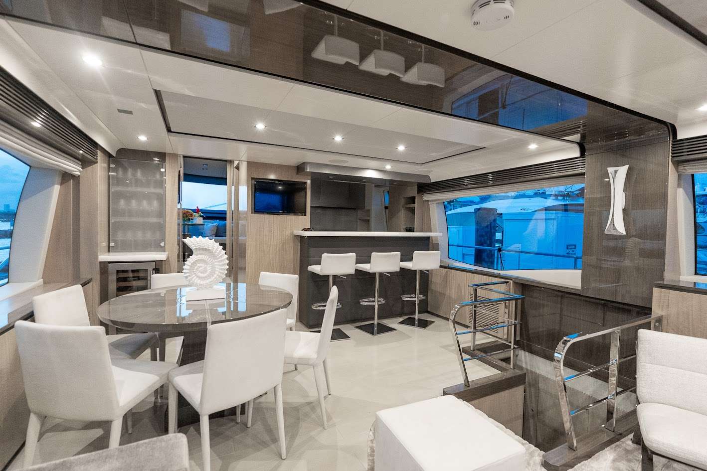 This Guy Coach 70 is brand new to the charter market and offers incredible comfort for her charter guests. She boasts expansive deck spaces, with comfortable lounging spaces on the after deck, including cushioned seating, sunbeds, a dining table, and a cover to shade from the sun if desired. Her bow area is the perfect relaxation space, including two sunbeds with a bimini top if the shade is desired, as well as a spacious, forward-facing sofa. The interior is designed for easy access, while also providing plenty of sofa space for everyone, as well as dining tables on both sides. She is also equipped with a convertible roof providing natural light if desired. Below deck, her 4 x well-appointed staterooms can comfortably accommodate 8 overnight guests. 1 x Owner's staterooms with king bed 2 x Guest staterooms with queen beds 1 x Guest stateroom with twin beds Tenders and Water Toys - Tender with outboard - Jetski (subject to license) - Donut - Snorkeling gear Key Features - Professional Captain & Stew - Jetski included - Convertible roof on the helm station - Expansive Portuguese Bow