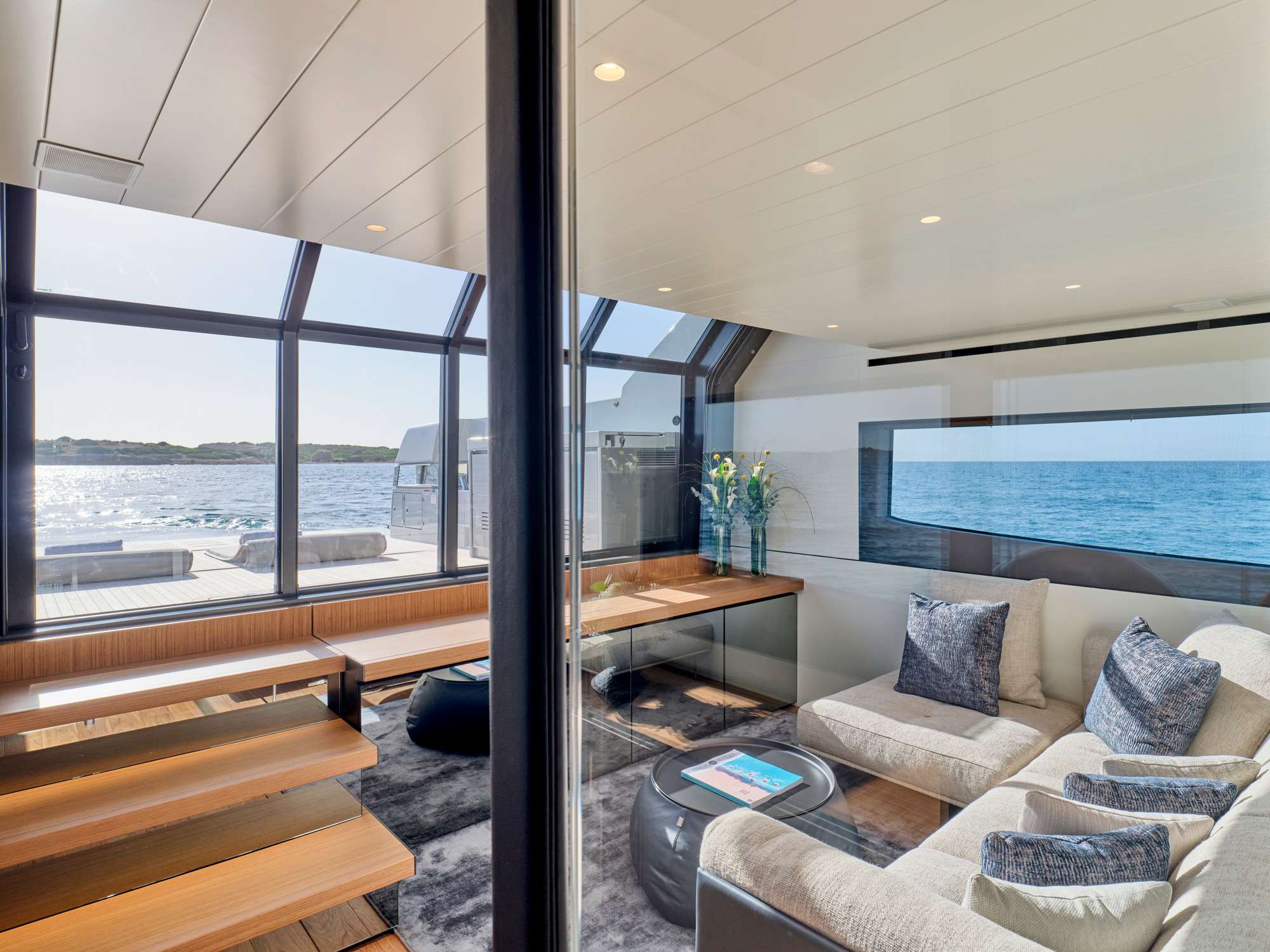 Conceived for those who pursue a profound closeness with the sea, this surprising power Bluegame BGX63 will make you experience the infinite blue even when inside your yacht. Two salons for maximum privacy, one on platform level and second on the main deck. Four exterior areas including a huge beach platform, a more private bow area along with a main deck dining area and sundeck matress area.