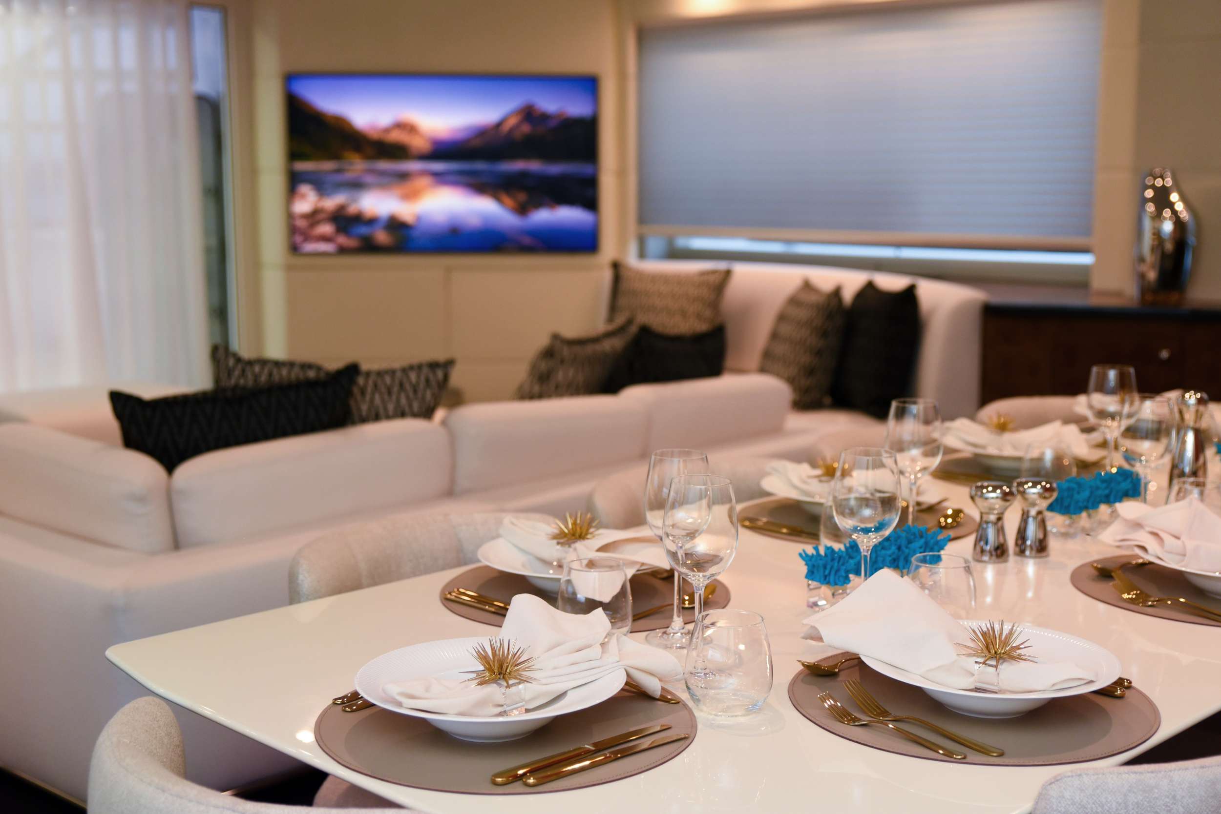 Double Happiness, a magnificent Sunreef 60 Eco Power, strikes the perfect balance between luxury, performance, and eco-friendly cruising. This newly built catamaran, launched in 2024, offers an unparalleled charter experience in the stunning waters of the Bahamas and British Virgin Islands. Designed with both comfort and sustainability in mind, Double Happiness boasts a spacious layout that provide a haven of tranquility, while the expansive living areas offer ample space for relaxation and entertainment. The yacht's interiors exude contemporary elegance, featuring refined decor, designer furniture, and light natural fabrics. Panoramic glazing in the main salon floods the space with natural light, enhancing the feeling of openness and connection with the surrounding seascape. Outdoor living is a true highlight aboard Double Happiness. The full-beam aft cockpit presents a fantastic alfresco dining area with breathtaking ocean views, complemented by a daybed, bar, and a hydraulic platform perfect for sunbathing and easy access to water activities. A serene bow terrace and a well-equipped flybridge with modular seating and barbecue complete the outdoor spaces, perfect for entertaining and relaxation. Double Happiness promises an exhilarating yet relaxing charter experience and invites you to explore the crystal-clear waters and pristine beaches of the Caribbean, offering a perfect blend of luxury, adventure, and eco-conscious sailing. The professional crew of three ensures impeccable service throughout your journey.