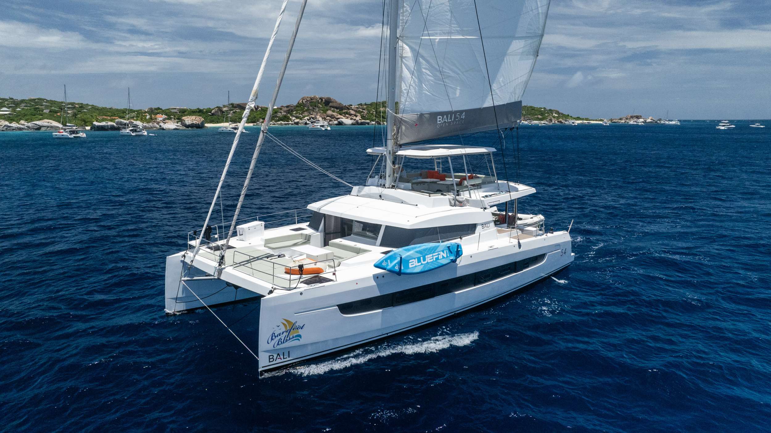 Barefoot Bliss is a fabulous 2024 Bali 5.4 featuring a spacious owner's suite and three queen-size en-suite staterooms. This sailing catamaran is equipped with Starlink, ensuring guests stay well-connected. Also, she has a hydraulic swim platform, beautiful SeaDek, which makes for a more luxurious and comfortable yacht, a hard top bimini, solar panels, custom A/C system, water maker, ice maker, full sized refrigerator, a fully customizable menu, ecofriendly and reef safe toiletries, well-stocked ship's bar, coffee/espresso machine, snorkeling gear, underwater scooters, wakeboard, stand up paddle board, 10 ft. floating dock, pool noodles, fishing gear, board and card games, television in the salon, Fusion 3 Bluetooth enabled sound system and Barefoot Bliss giveaways.
