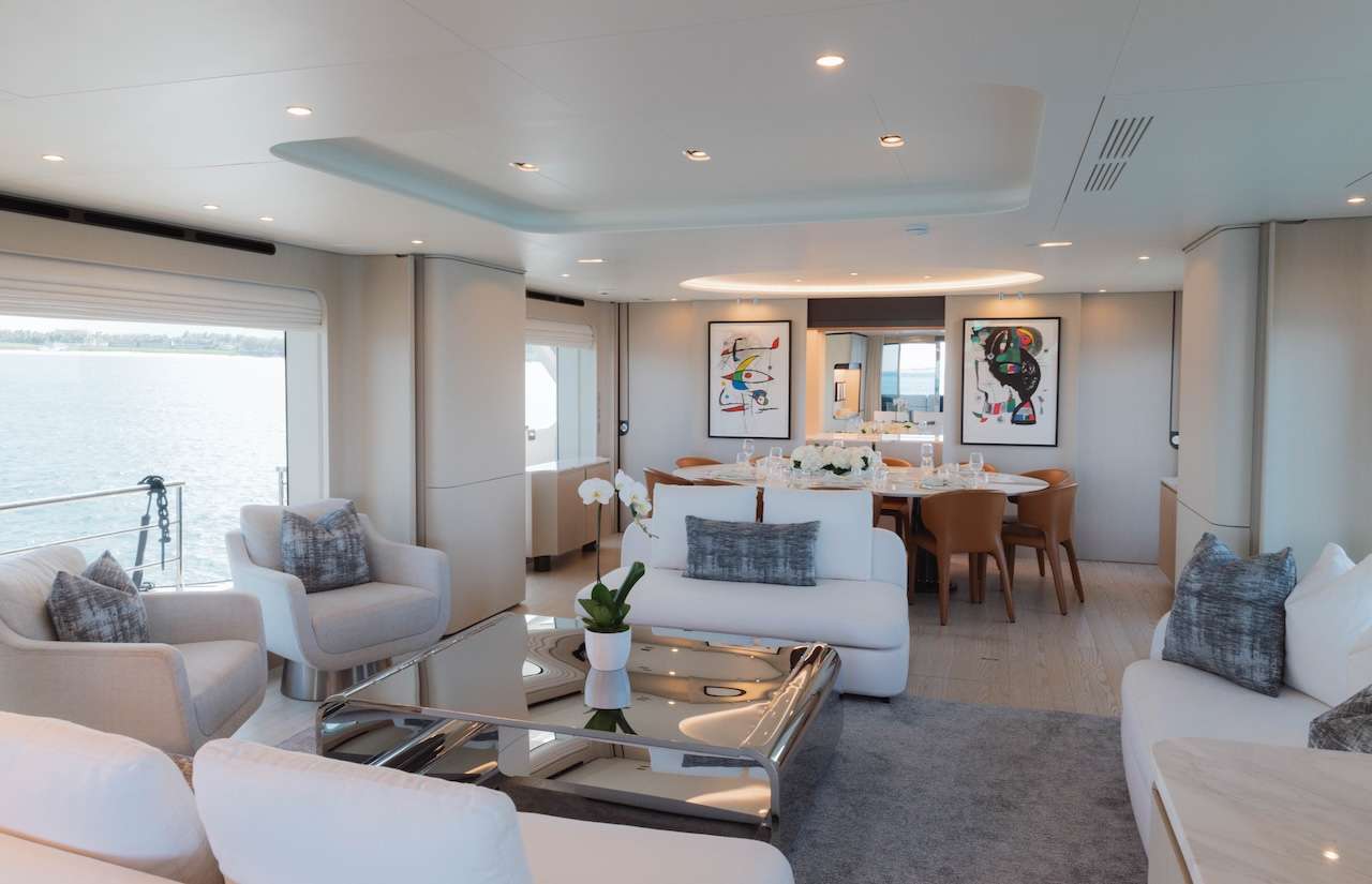 Winner of several prestigious awards for its thoughtful design and interior layout, the Majesty 140 redefines the meaning of superyacht by setting new standards in onboard space and entertainment features. Once you board RISING DAWN you will immediately see why the Majesty 140 has won “The Best Interior Design" at the Cannes Yachting Festival and “Best in Show" at the Fort Lauderdale International Boat Show. RISING DAWN is the perfect charter yacht for friends and family with relaxing and entertaining being the center focus of the yacht. With three dining areas, you can enjoy your meal in a different location throughout the day. The main deck aft features two aft folding balconies, a unique feature for a yacht this size. Guests can enjoy being steps away from the water in the large beach club. A large jacuzzi is the center piece of the bridge deck aft with plenty of lounging and dining space. The sun deck is the perfect location for al fresco dining and the retractable awning so guests can dine under the starts at night. RISING DAWN can accommodate up to 12 guests in 6 luxurious staterooms. The modern master stateroom is forward on the main deck and features an ensuite with a his and her sink and a large shower. Four staterooms are located below deck, all with their own ensuite. Two staterooms feature a queen bed and two twin staterooms with a pullman bed. The remaining stateroom is on bridge deck and features a queen. The living interior space is inviting with large picture windows and light contemporary styling with comfort kept in mind. The main deck features a large L shaped sofa and an open formal dining area. The skylounge is the perfect place to unwind after a busy day and watch your favorite film. RISING DAWN has an array of water toys and is accompanied by a 34' Grady White with twin 350 HP. She is complete with a professional and charter savvy crew of 10 who will make sure your charter is one that gives you memories to last a lifetime.