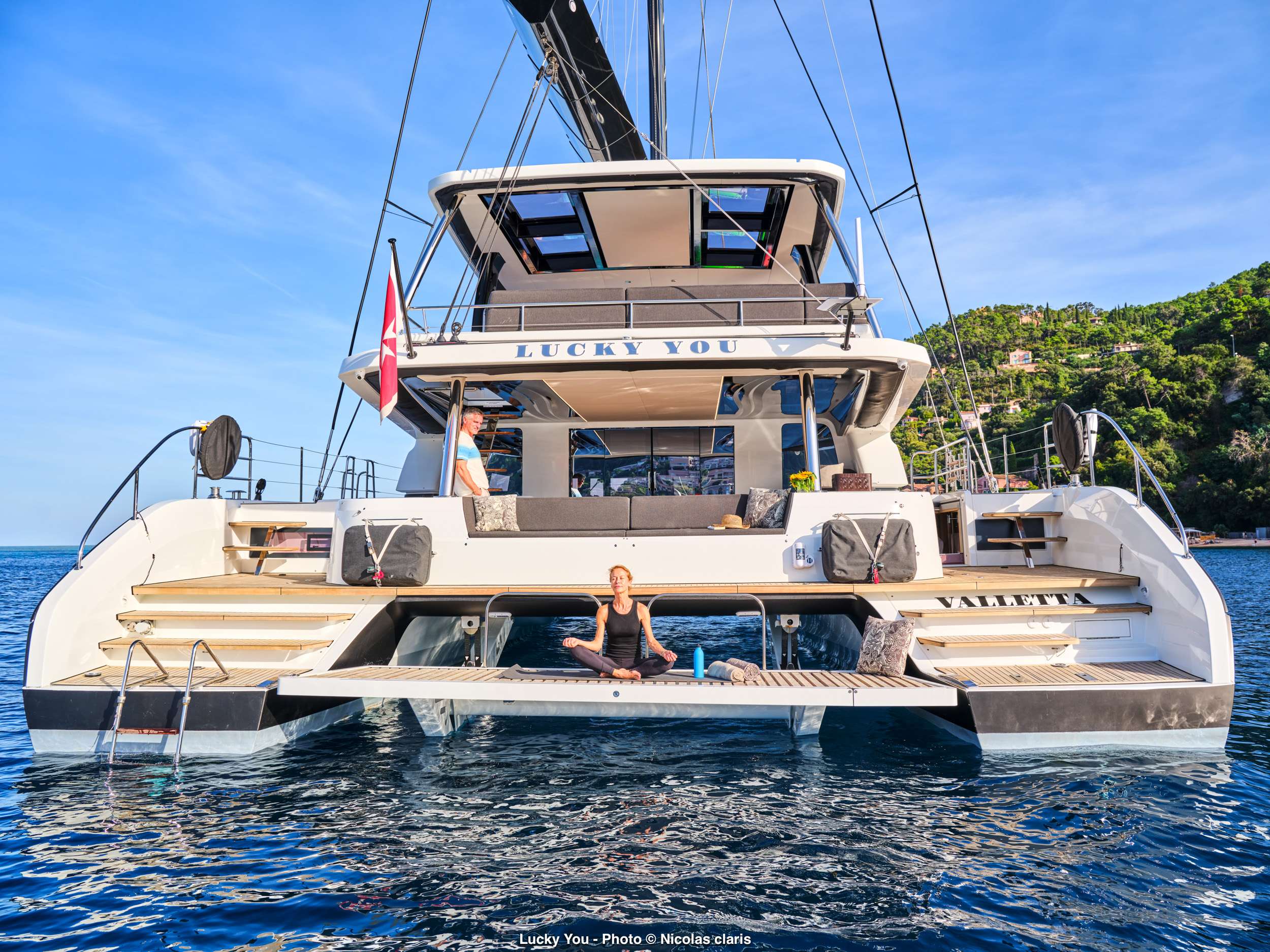 S/Y Allure 59 is a breathtaking Fountaine Pajot Samana 59, a sailing catamaran that perfectly captures the essence of luxury, space, and freedom. With her impressive 30m² flybridge — the largest in her category — she offers guests an exceptional blend of comfort, style, and performance, creating the ideal setting for unforgettable moments shared with family and friends. Every detail of Allure 59 has been meticulously designed to balance sociability and serenity. Her 27.5m² aft cockpit is ideal for alfresco dining and relaxed gatherings, while the foredeck features modular sunbeds, providing a private oasis for sunbathing or simply soaking in the views under sail. The spacious flybridge invites guests to unwind with panoramic vistas, enjoy sunset cocktails, or celebrate under the stars. Inside, her bright and inviting saloon flows seamlessly between the lounge and dining areas, creating a sophisticated atmosphere enhanced by her galley-down layout, which ensures space and openness in the main living area. S/Y Allure 59 accommodates up to 10 guests in five equally luxurious double cabins, each featuring queen-size beds and private en-suite bathrooms. Designed for both privacy and comfort, every cabin offers natural light, modern finishes, and refined details that elevate the onboard experience. Her professional crew of three — a long-standing and perfectly synchronized team — ensures an exceptional charter experience defined by warm hospitality, gourmet dining, and seamless service. Their dedication and genuine care have earned S/Y Allure 59 a loyal base of repeat guests who return year after year to relive the magic. Whether gliding through the Aegean's turquoise waters or anchored in a tranquil bay, Allure 59 embodies the French art de vivre — the celebration of life, beauty, and freedom at sea. S/Y Allure 59 isn't just a yacht — she's a sanctuary for those who believe that every moment on the water should be unforgettable.