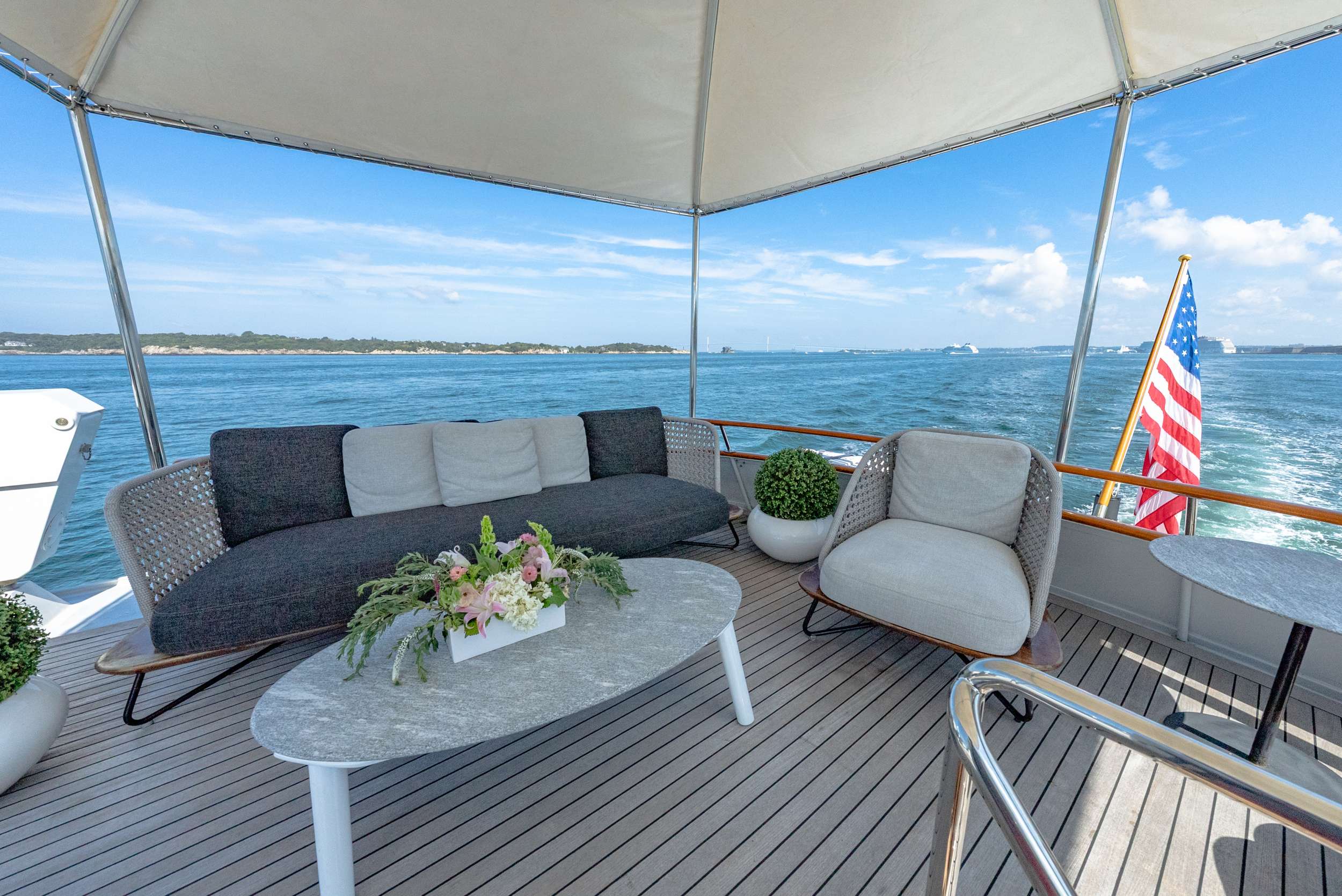 TEMPTATION, a 123 ft (37.49m) luxury superyacht is part of the Palmer Johnson 123 Fly Series and an optimal choice for those seeking a luxurious charter experience. TEMPTATION boasts a sophisticated interior and exterior crafted by Nuvolari & Lenard. Recognized as one of the chicest yachts in her size category, she offers accommodation for up to eight guests, including a main-deck master suite, a full-width VIP suite, and additional staterooms. TEMPTATION is adorned with timeless furnishings and various seating areas, ensuring both comfort and elegance. Beyond her exquisite interior, TEMPTATION's outdoor spaces are equally impressive. Guests can unwind in the beautiful Jacuzzi situated on her sundeck, providing breathtaking panoramic views. The yacht is equipped with a fully stocked wide selection of toys featuring paddle-boards, wakeboards, and two Yamaha 11000 deluxe Wave Runners for guests' enjoyment. Tailored for families and groups of friends seeking a luxurious charter experience, TEMPTATION combines style, comfort, and recreational amenities.
