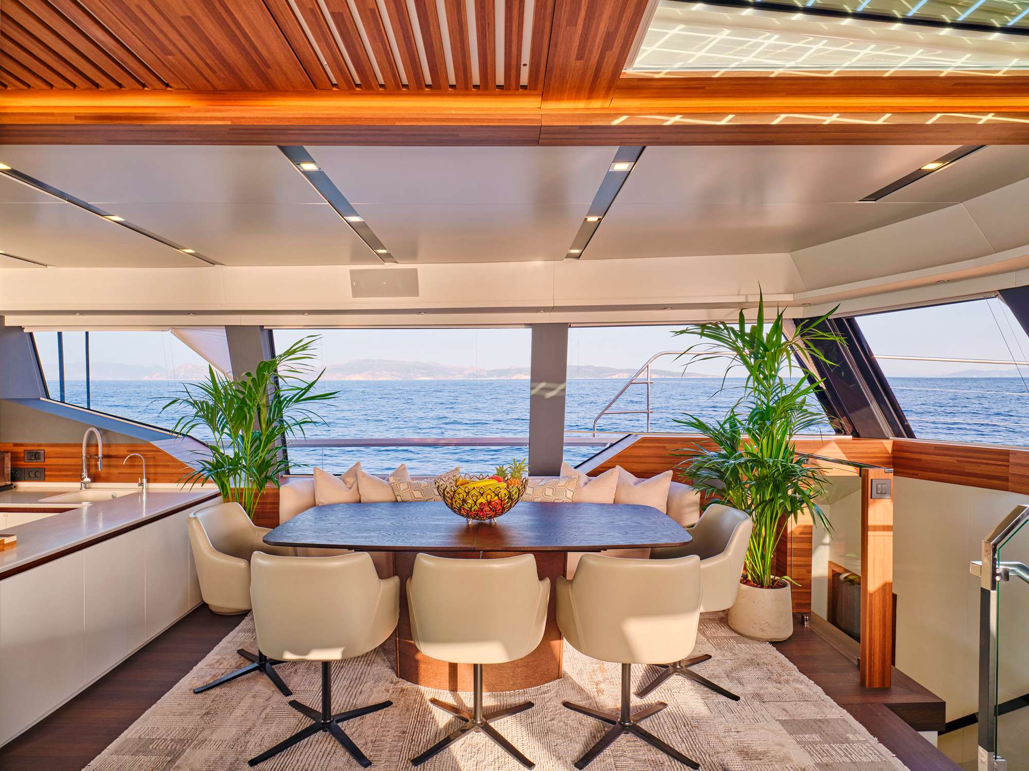 Step aboard the NEW Fountaine Pajot 80 S/Y ALOIA 80 and experience the epitome of luxury in a catamaran. With its spacious flybridge offering an authentic ocean terrace and a forward cockpit with ample seating, this vessel is designed to provide the ultimate in relaxation and enjoyment. Whether you want to feel the thrill of sailing or simply unwind on the decadent lounges and sunbathing beds, S/Y ALOIA 80 has it all. Inside, you'll find a strikingly modern and incredibly spacious interior that exudes comfort and luxury at every turn. The yacht boasts a total of five cabins, including a lavish owner's suite, and four queen-sized cabins, all of which come with their own private bathrooms and a galley down. This ensures that every guest on board enjoys the utmost privacy and convenience. Outdoors, the flybridge and forward deck provide plenty of space for sunbathing and relaxation, allowing you to soak up the sun while enjoying breathtaking views of the ocean. The aft cockpit is perfect for socializing with friends and family, as well as indulging in alfresco dining experiences that will leave you craving more. Of course, no luxury experience is complete without a dedicated crew to cater to your every need. S/Y ALOIA 80 comes with a professional and attentive crew, including a captain, deck/stew, and chef, who are all eagerly waiting to spoil you and fufill your every wish. From exquisite cuisine to personalized itineraries, they will go above and beyond to ensure that your stay on board is nothing short of phenomenal. When you step on board S/Y ALOIA 80, you can expect a relaxing and luxurious environment that is tailor-made for distinguished guests like yourself. It is a true testament to style, elegance, and the art of sailing, offering an experience that you will cherish for a lifetime.
