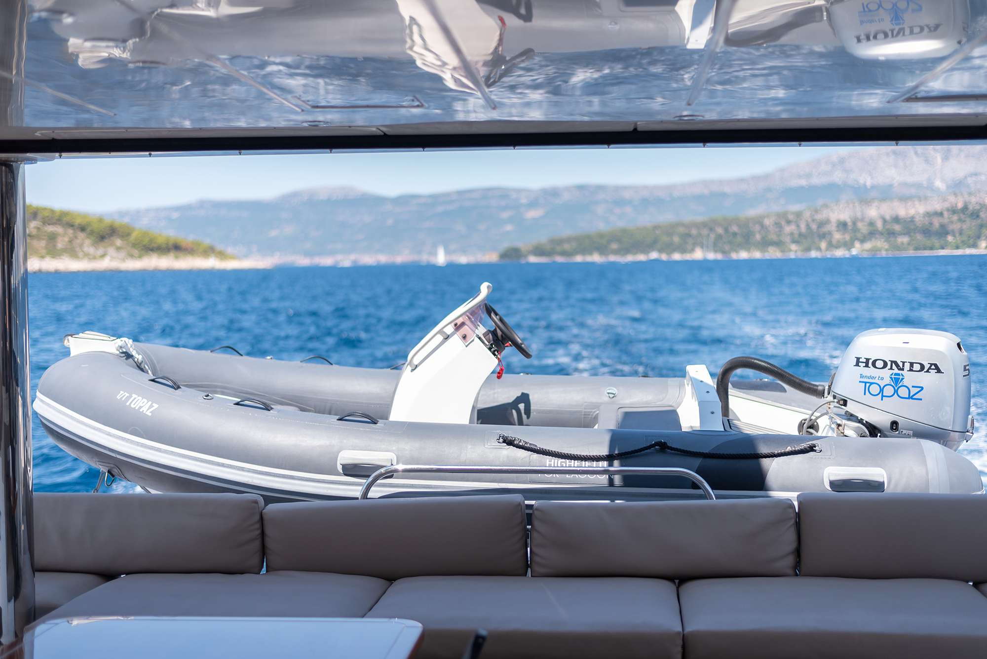 Lagoon 560 S2 “TOPAZ", offering an exquisite experience for up to 10 guests in 5 cabins. With dedicated crew - skipper and stewardess accommodating your needs, enjoy the ultimate comfort and relaxation. Equipped with modern amenities including TV, A/C, generator, water toys, a wine cellar for your favorite selections, 2 SUPs for water adventures, microwave for quick bites, ice maker to keep your drinks cool, and a coffee machine for your morning brew. Sail in style, dive into luxury and create unforgettable memories on board Lagoon 560 S2, where every detail caters to your pleasure and relaxation. Lagoon 560 S2 “TOPAZ": FULLY REFITTED 2024: platform/tenderlift, engines, watermaker, generator, sun covers, bow net, ropes