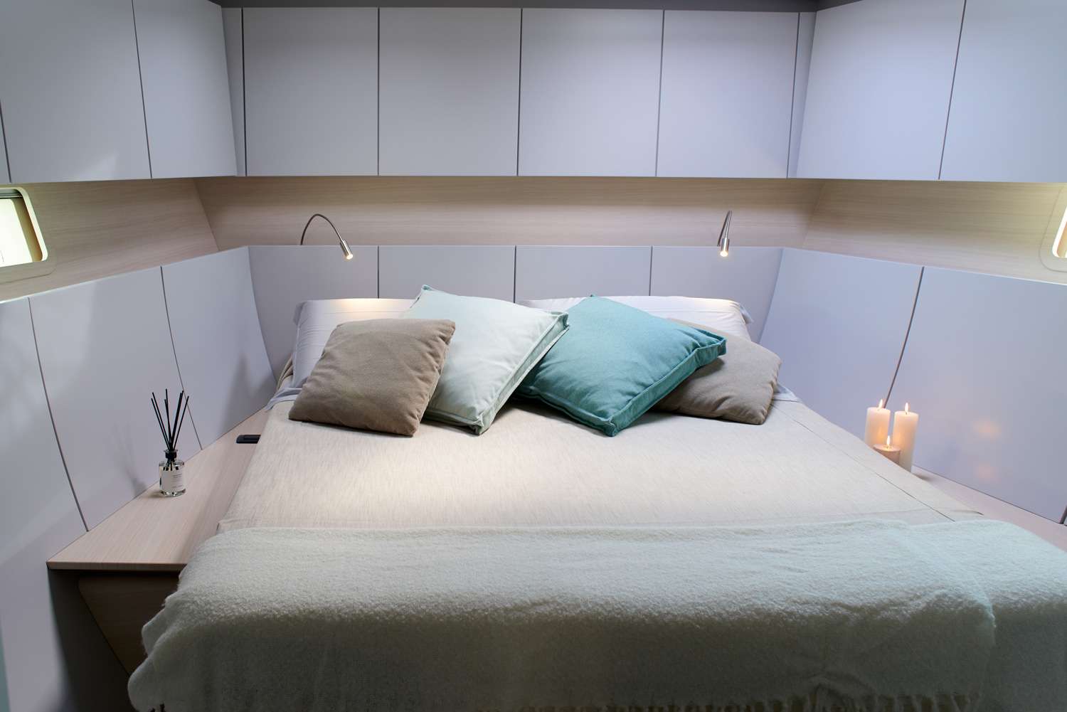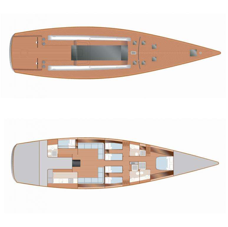 This exclusive Wally 80 offers accommodation for up to 6 guests in 3 cabins. The en-suite owner cabin's located forward, two en-suite double cabins with single beds amidship and a cabin for two crew members aft.