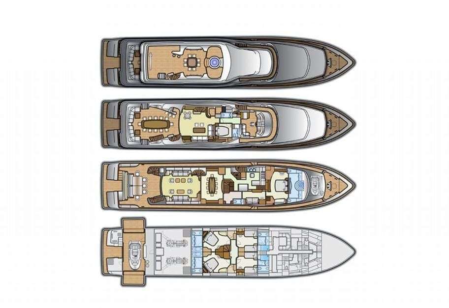12 guests in 6 comfortable and luxurious cabins: 1 Master suite, 2 VIP cabins, 1 Double cabin, 2 Double cabins each with a Pullman bed