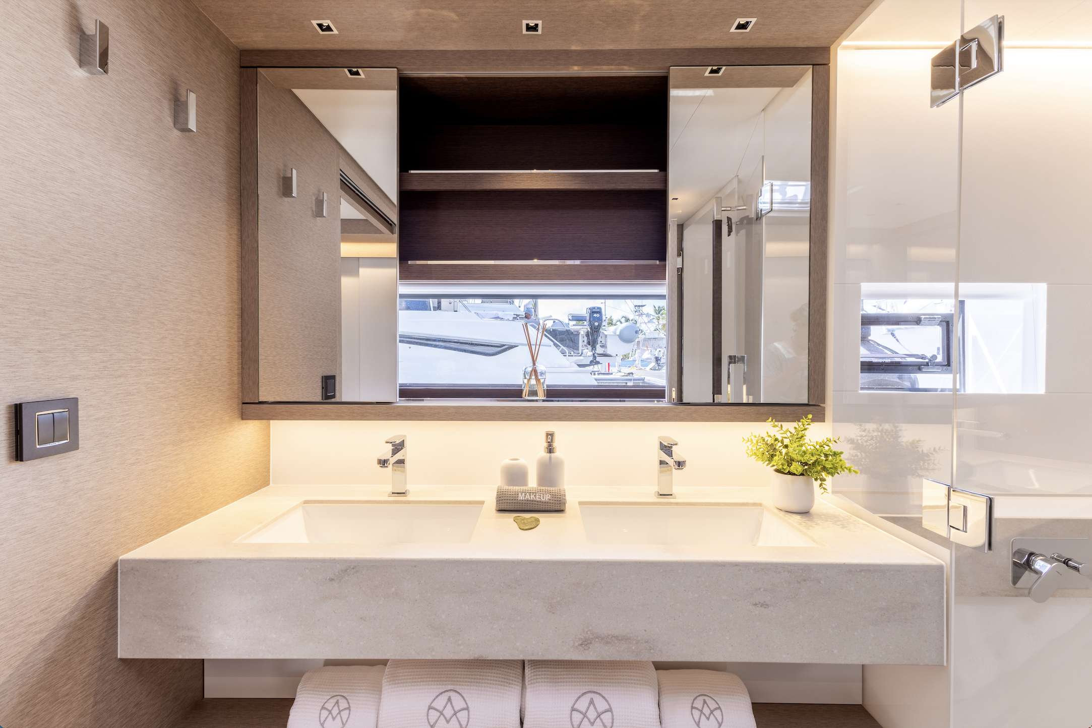 Welcome aboard this first class 2023 Lagoon 65! Available for charter in the British Virgin Islands, we provide luxury accommodation for up to 8 guests in 4 spacious VIP cabins (1 King, 3 Queens). We are the only model with a custom-enlarged Owner's cabin King bed, and double-sized shower for your comfort. Featuring spacious cabins, dining areas both in the cockpit and enormous flybridge, boasting 2 bars, numerous sunning spots (or shade!) and dual helm stations, this really is a masterpiece yacht. On board, you'll indulge in exquisite culinary creations crafted by our chef, paired with expertly crafted cocktails prepared by our skilled stewardess. Three experienced crew members will cater to your every whim, both onboard and on the water! We will set sail and discover perfect bays, secret coves, swim with turtles, and explore the islands that have inspired stories of pirates and treasure for centuries. Made for both relaxation and adventure, there will be no shortage of activities on offer; snorkeling, diving, sailing, tubing, paddle-boarding, kayaking, hiking, sea-bobs, and wakeboarding, this winning combination of crew and yacht will help provide the vacation of a lifetime for your group. What are you waiting for?