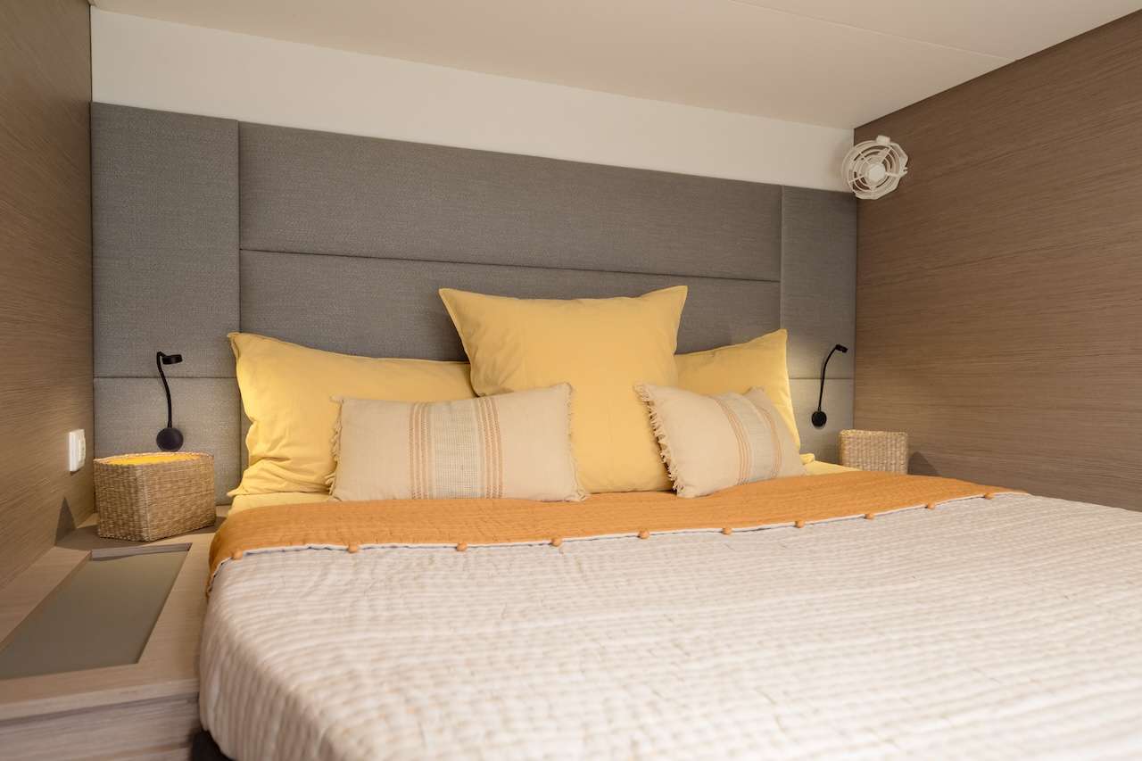 Beyond has 1 Owner's suite and 4 VIP double cabins, one of which is reserved for crew. All cabins have en-suite bathrooms. Guests will find that the decor reflects neutral colours and natural textures. With cream upholstery which contrasts the pale oak cabinetry and dark oak flooring, the sense of chic living is effortlessly achieved. Due to its design, Beyond's cabins offer sources of natural light from flush deck hatches overhead and large hull windows making guests' nights more enjoyable and restful.
