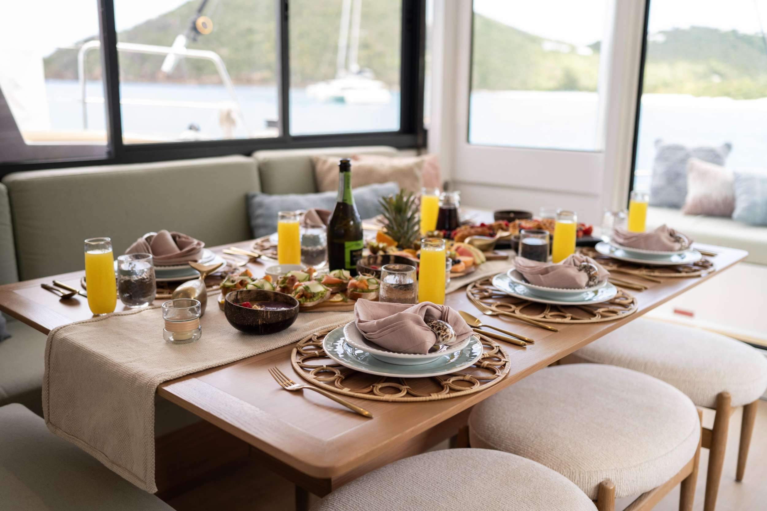 “All Treasures in Life are Borrowed" Borrowed Bounty will accommodate 8 charter guests in 4 spacious queen cabins. She is a 2024 sailing catamaran offering SeaDek encompassing the entire deck, upgraded engines, solar panels, air conditioning, water maker, ice maker, full sized refrigerator, a fully customizable menu, ecofriendly and reef safe toiletries, a bar stocked to guest preference, coffee/espresso machine, rendezvous scuba diving, snorkeling gear, underwater scooters, subwing, wakeboard, stand up paddle boards, kayak, towable water tube, floating dock, pool noodles, fishing gear, board and card games, television in the salon, Fusion 3 Bluetooth enabled sound system and Borrowed Bounty giveaways.