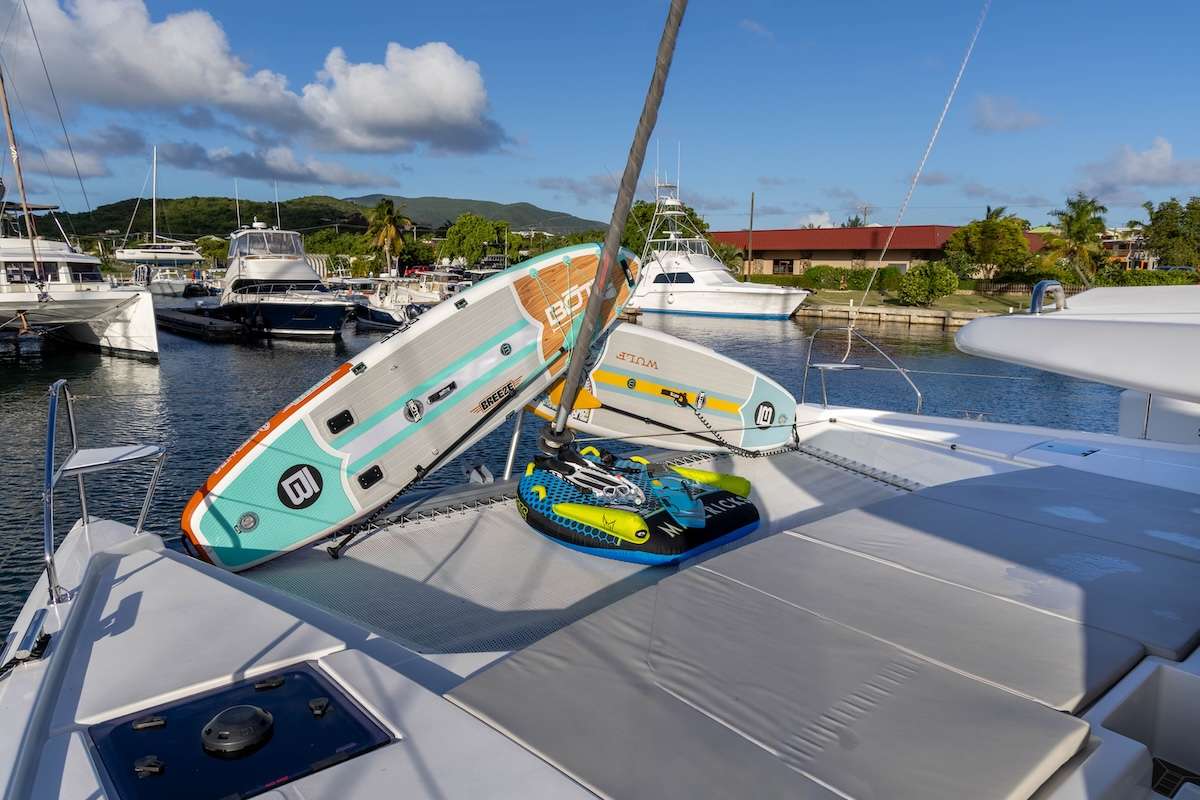 Imagine yourself relaxing on the flybridge, just steps from the helm, with a warm breeze brushing past as the stunning Virgin Islands stretch out in every direction. Whether you're basking in the sun above or making your way across the expansive decks, each turn reveals another unforgettable view. Crafted for those who value both luxury and the freedom of the sea, this yacht invites the outdoors in. Floor-to-ceiling glass and a skylight bathe the saloon in sunlight, creating a seamless transition between interior comfort and the natural beauty surrounding you. Below deck, four beautifully styled queen cabins await, each with a private en-suite, ensuring every guest enjoys their own serene retreat. From your morning coffee to evening sundowners, this yacht places you front and center in the heart of paradise.