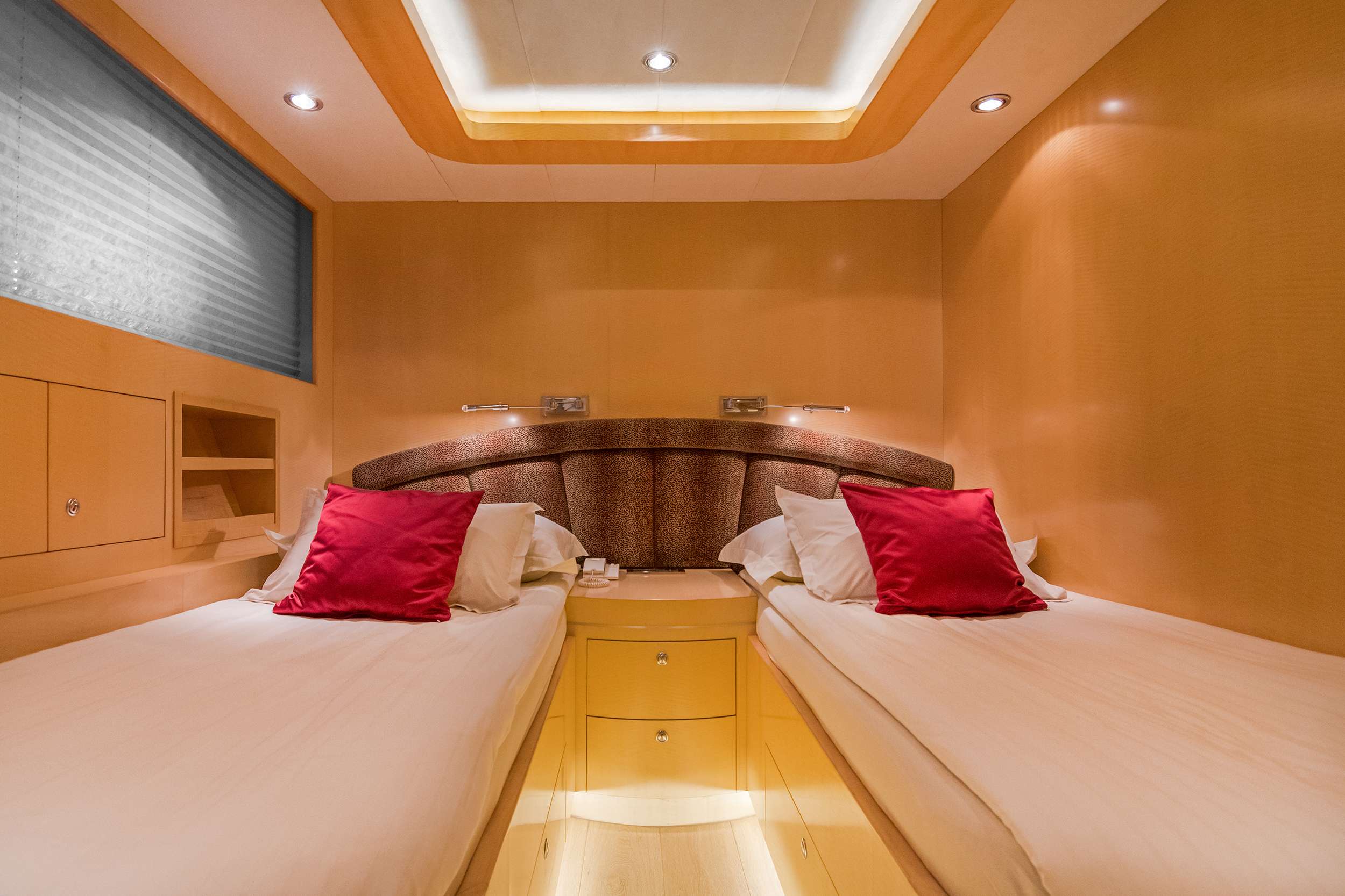 Designed to make unforgettable memories, Conte Alberti is truly the perfect place for spending time with friends and family while enjoying the Croatian sun and the many islands Croatia has to offer. This 27 meter Horizon yacht has undergone an extensive refit in 2020 to go above and beyond chartering her guests. With her well-equipped crew of four led by captain Ivan, you will be in the best hands possible at sea. The only thing you will have to think about is which cocktail you wish for chief stewardess to prepare you while you slip on your bathing suit and jump into the jacuzzi. Whether you have a light lunch in the lounging area or prefer to have a four course meal at the table, chef Damir will surprise you with his extensive background. The many toys including the tender, sea bobs, jets, paddleboards and waterski will be waiting for you as you test the warm sea water. You can also stay on the fly, a true social hotspot with the multiple lounging areas, bar, outdoor grill and dining area. If you want to change up the scenery you can even choose to explore the indoors, with her warm interiors and indoor bar, everywhere you turn is a new exciting surprise awaiting. Make your next memorable moments onboard Conte Alberti.