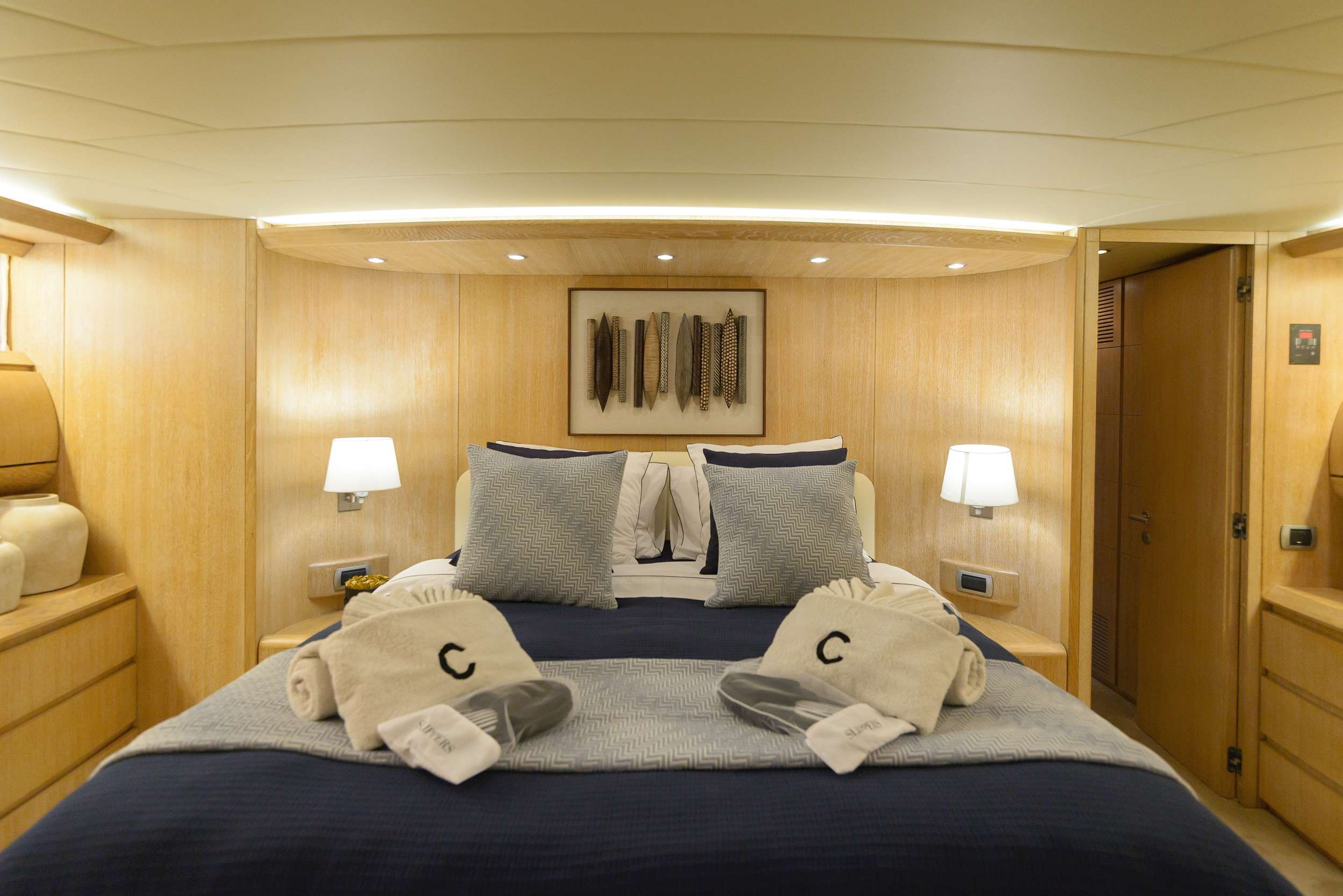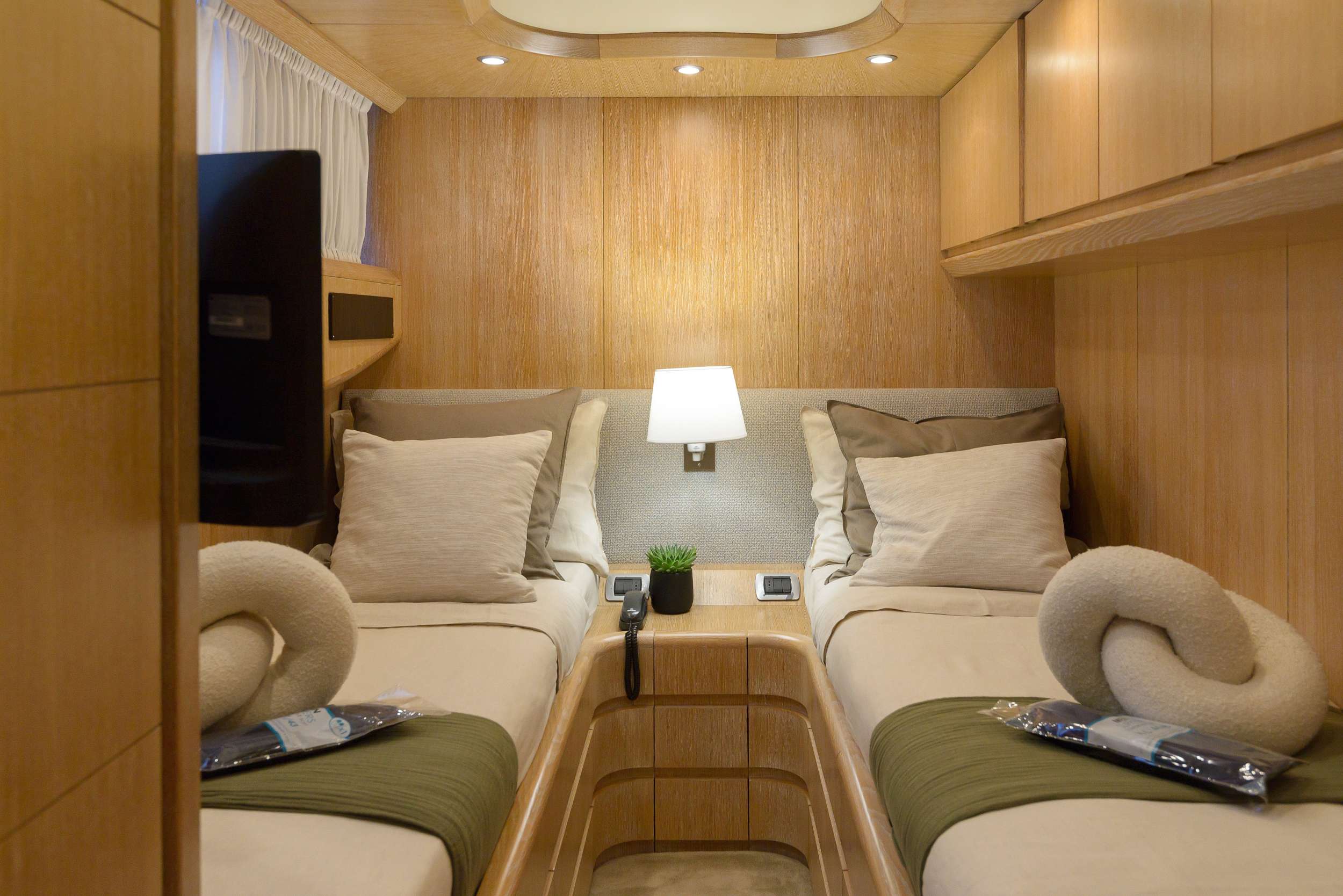 M/Y COOKIE accommodates 8 guests onboard in 4 cabins One Master Cabin with Queen bed, safe, vanity desk & walking closet One VIP Cabin with Queen bed Two Twin Cabins, one with an additional Pullman bed All cabins with ensuite facilities