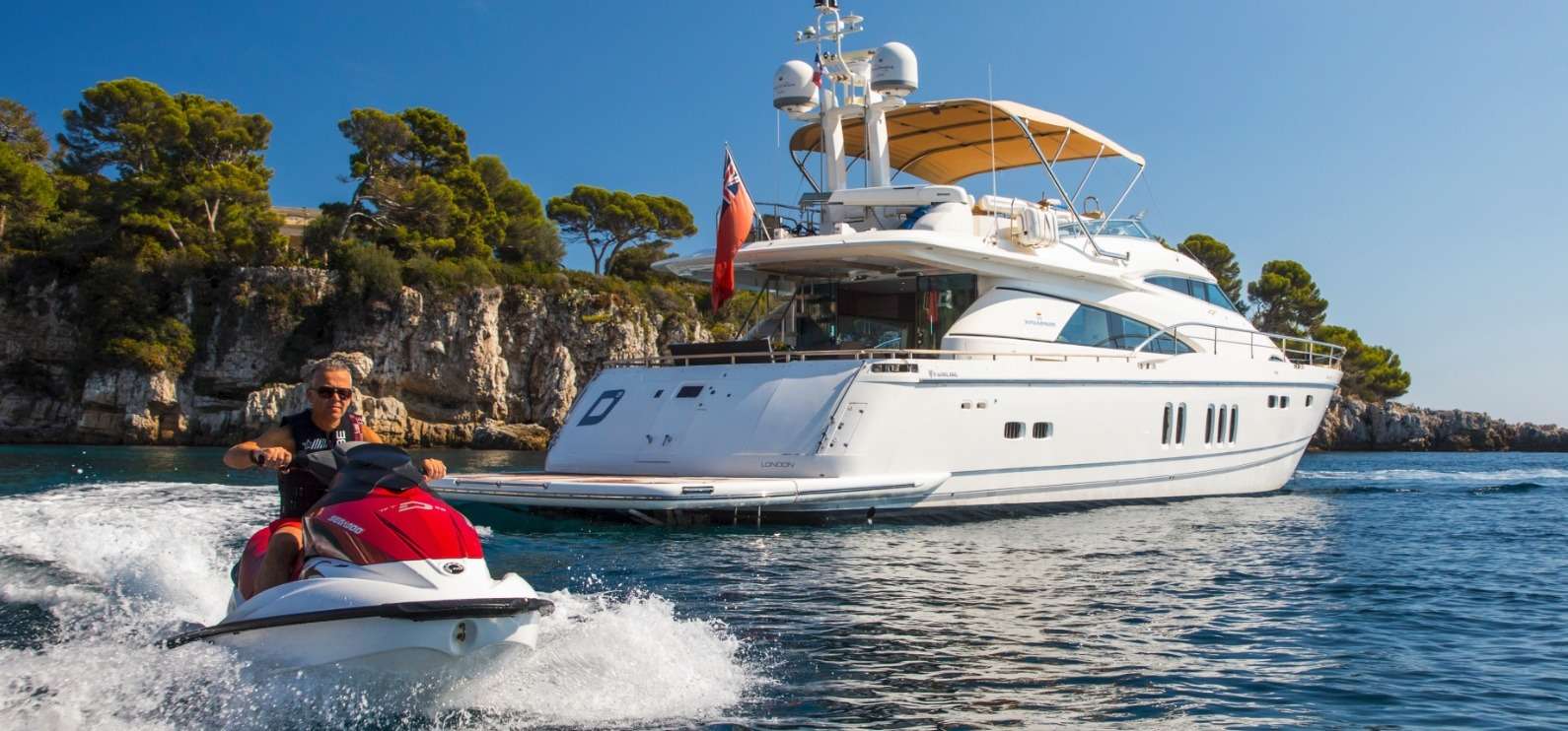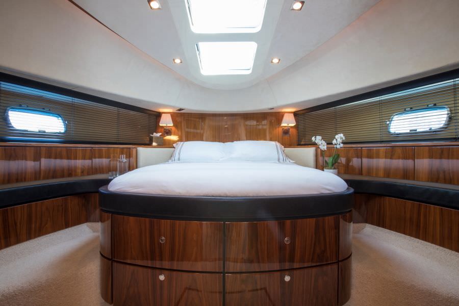 This gorgeous Fairline Squadron 78 provides generous living areas both inside and out. Her chic modern décor with luxury furnishings, beautiful woods and quality leathers provide the perfect setting for stylish cruising of the Mediterranean. The spacious outdoor areas provide sociable dining experiences on both the aft deck and flybridge, together with lounge and sunbathing areas. On the foredeck there are sunpads available or, alternatively, original 'fatboy' seat cushions for sun lovers! The Flybridge is also equipped with a bimini cover, serving bar, sink, fridge and separate sound system. D5 accommodates 8 guests in 4 cabins offering a luxury boutique feel. The Master stateroom is bright and airy thanks to the triple portrait windows with sofa, vanity table, walk in dressing room and large ensuite with double sink and walk in shower. There is a VIP stateroom forward and the two twin guest cabins both have full length berths and a spacious shared bathroom. D5 offers comfort and style and is ideal for a luxury yacht charter with family, friends or corporate clients.