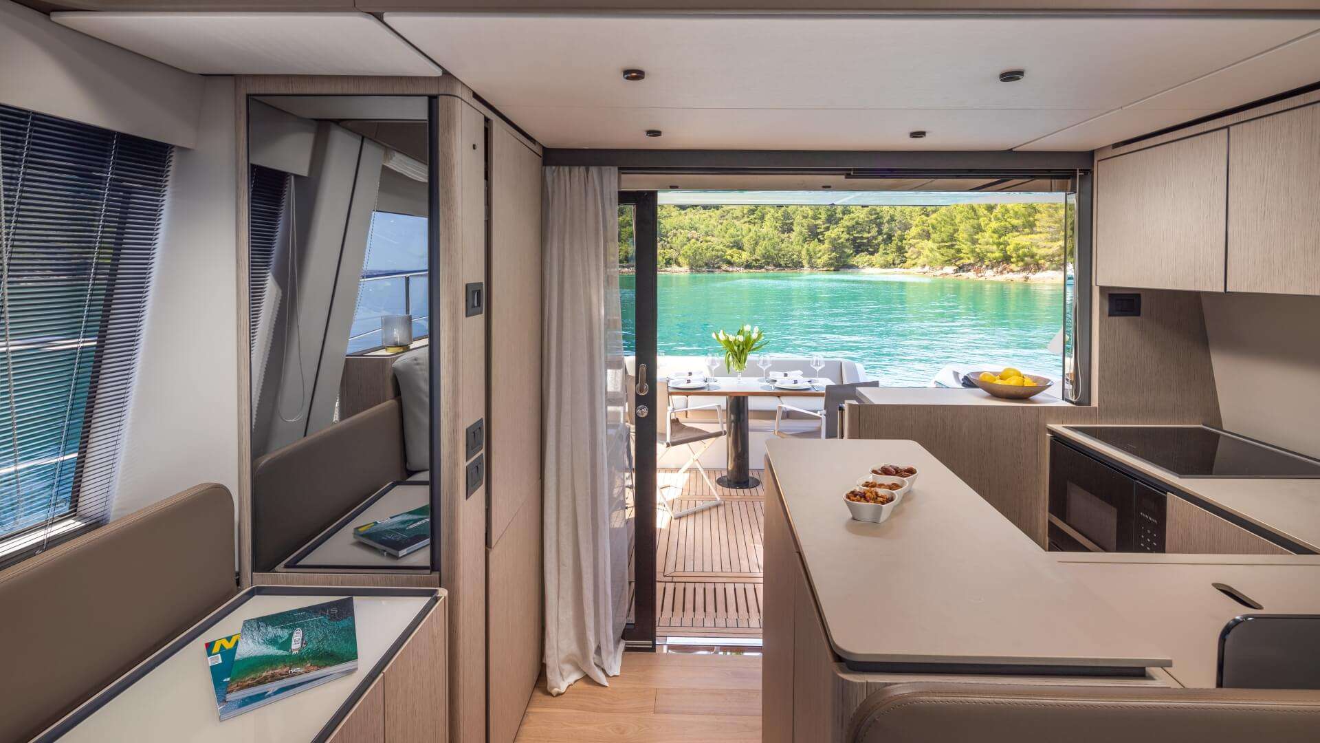 Combining sporty flair with luxurious comfort, the Ferretti Yachts 580 epitomises modern flybridge design. With a length of 18.24 meters and a maximum beam of 5 meters, it represents a collaboration between the Strategic Product Committee led by Mr. Piero Ferrari and the Ferretti Group Engineering Department. Architect Filippo Salvetti's exterior styling and Ideaeitalia's interior design reflect contemporary trends and owner preferences, maximising space and liveability. The Ferretti Yachts 580 offers a flybridge with versatile spaces over 18m2, including a sun pad, lounge area, and dining space with a bar unit. The main deck features innovative storage solutions, a convertible dining area, and versatile outdoor areas, allowing various configurations to suit different occasions. Inside, two design moods, Classic and Contemporary, offer elegance and comfort. The galley, living area, and pilot house boast modern amenities and customisable features, ensuring that every owner can tailor the yacht to their unique tastes and needs. On the lower deck, two layout options accommodate six guests across three cabins. The master suite spans two levels with ample natural light and a luxurious layout. The crew area ensures guest privacy. Under the hood, the Ferretti Yachts 580 is powered by Volvo Penta D13 engines, a testament to advanced engineering. These engines propel the yacht to 22-26 knots, ensuring high-performance capabilities. The Ferretti Yachts 580 sets new standards in flybridge luxury, blending performance, comfort, and style for discerning owners.