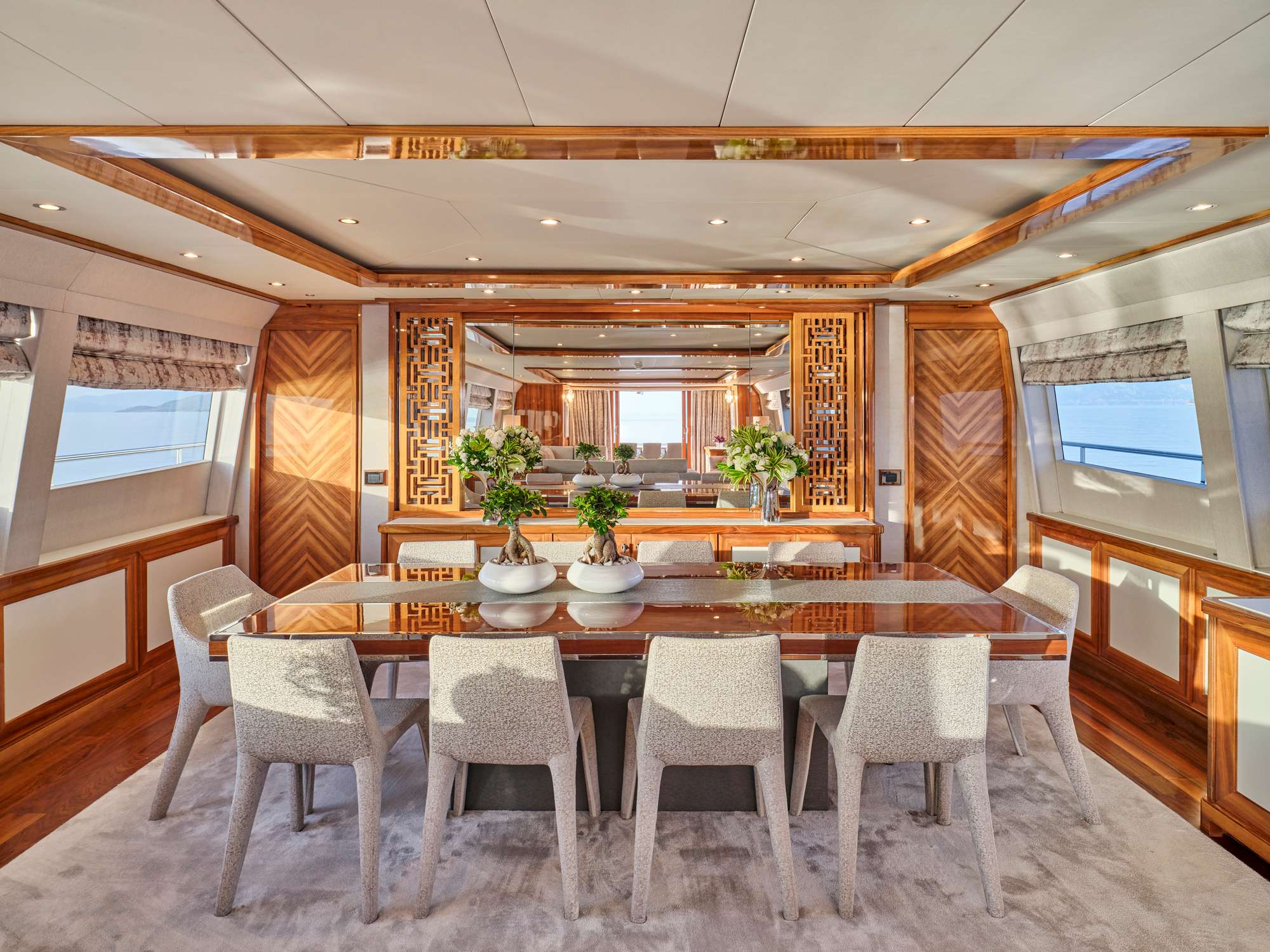 1 Master Suite on main deck 1 Master Suite on lower deck 2 VIP Suites on lower deck 2 Twin cabins with 1 pullman berth each on lower deck