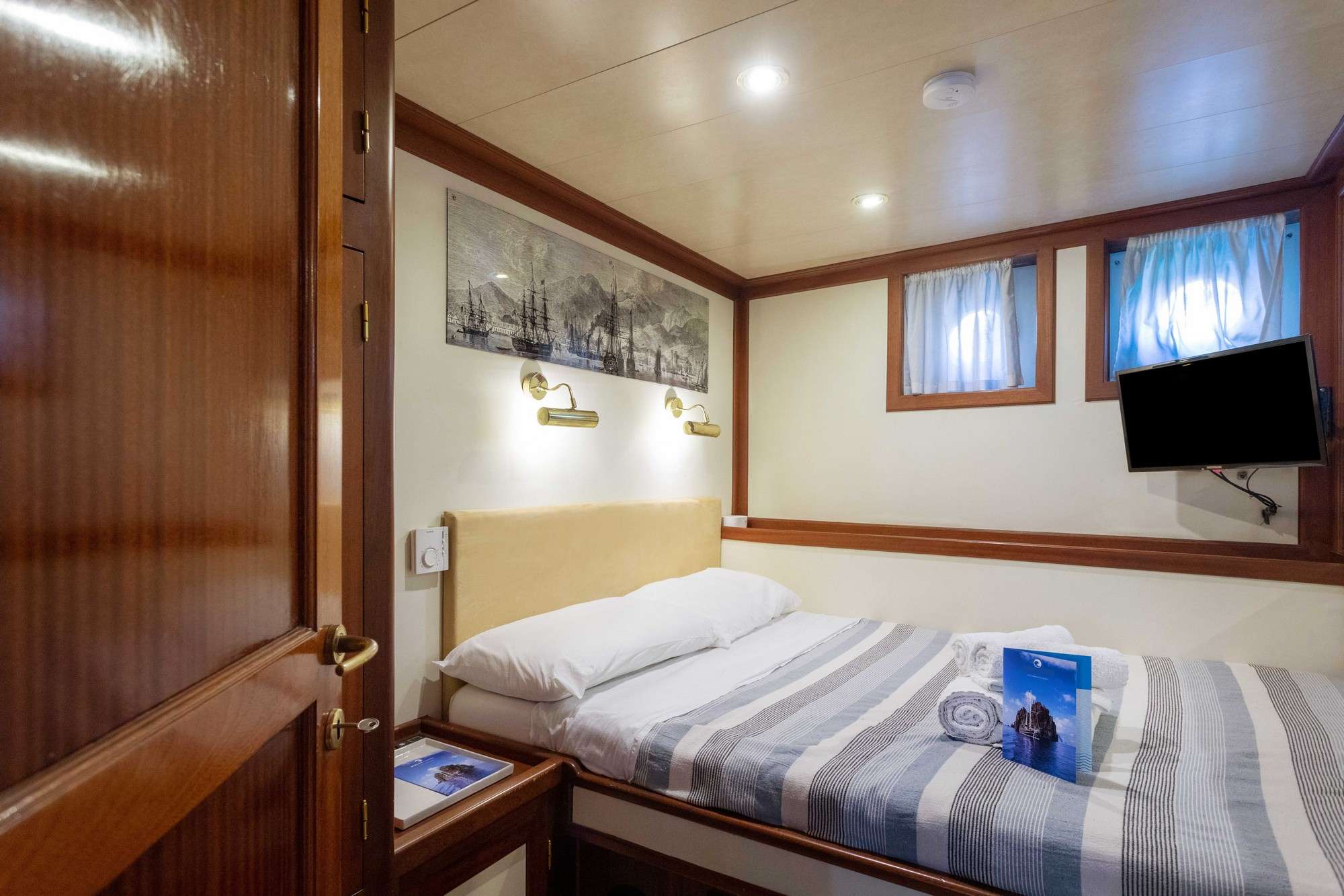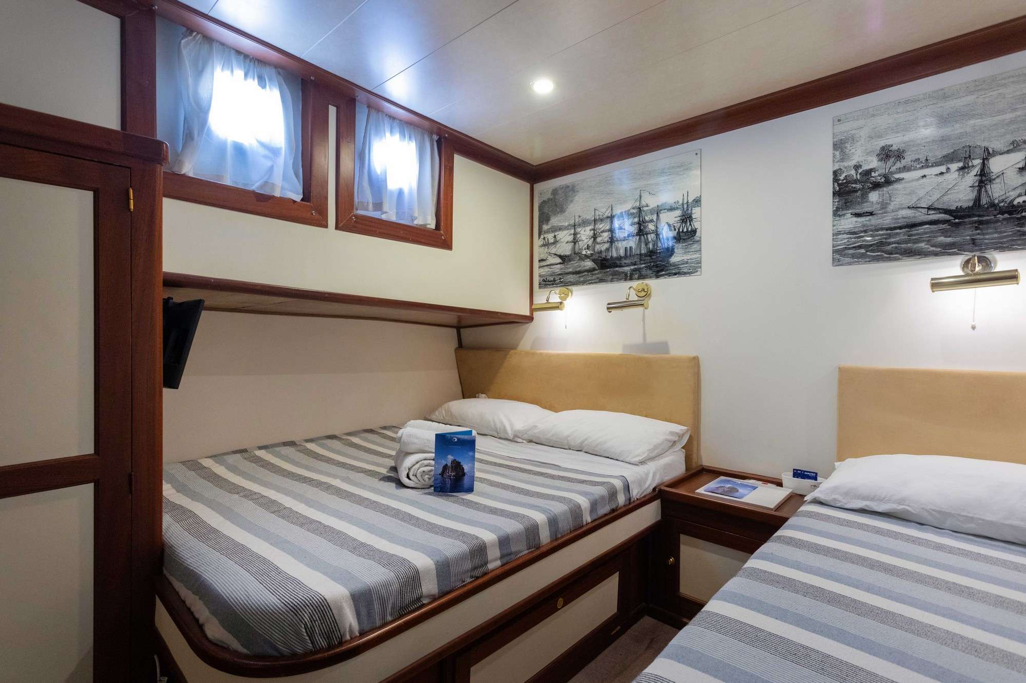 She can accomodate up to 12 guests in 1 master + 2 double + 2 triple cabins, all ensuite.