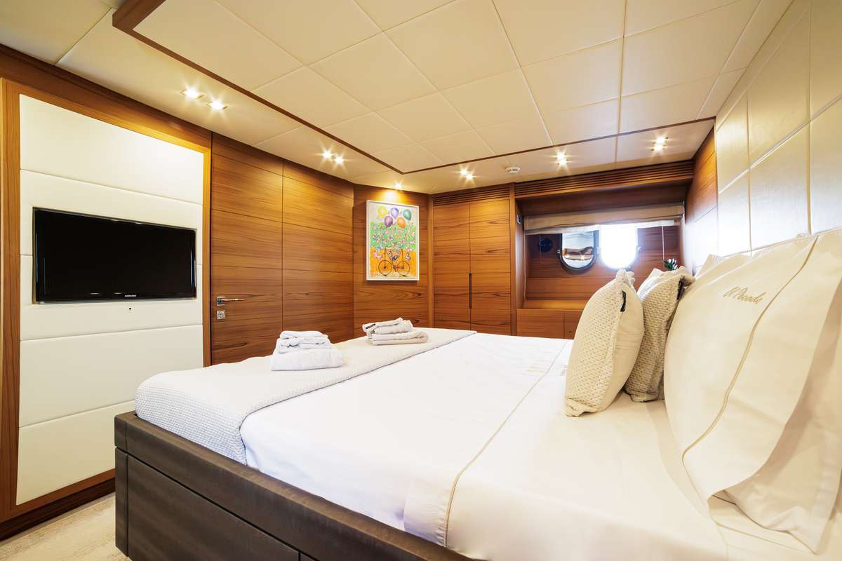 Built as demo in 2014, launched in 2018 and extensively refitted in 2024, the Maiora 82' motor yacht EL PECADO epitomizes meticulous care and attention to detail. Accommodating 9 guests in 4 elegantly appointed cabins, she provides both comfort and privacy. The yacht boasts a spacious salon equipped with a 50" Samsung TV and a BOSE sound system, perfect for entertainment. Guests can enjoy a variety of water toys onboard, ensuring endless fun on the water. EL PECADO is also eco-conscious, featuring low fuel consumption for efficient cruising without sacrificing speed or comfort. Her advanced Zero Speed Stabilizers guarantee smooth and tranquil journeys, making her ideal for exploring unique destinations. Whether lounging on the sun deck, diving into crystal-clear waters, or savoring a sunset dinner, EL PECADO promises an unparalleled yachting experience.