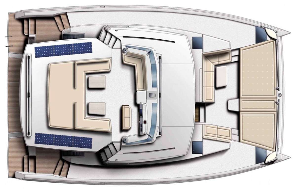 "Ella" is a 2024 Lagoon 46 mainly accommodating 8 pax in 4 cabins, with the benefit of an additional 2 guests as the sofa in the salon converts to accommodate two extra guests, which can be perfect when extra guests are required. BOW AND AFT COCKPITS: Semi-rigid bow cockpit with two large practicable nets. Cushioned sundeck. Decktent Aft cockpit with spacious dining table and ICE MAKER 220v Bench with mattresses Ample storage space. Teca Floor SALOON AND FLYBRIDGE COCKPITS: Large dining table. Sliding door to aft cockpit and spacious area. Sofa with ample storage capacity Panoramic windows throughout the salon. Helm station canvas Bimini with window & windscreen Fully padded sundeck. Command post and cushioned armchairs. Console with engine panels, Plotter, and navigation electronics displays.