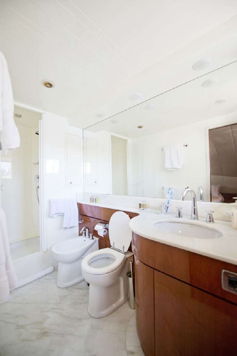 She is an elegant yacht with ample space and good performance, she was built in 2005 by Falcon and last refitted in 2023. Her exterior styling has been designed by Stefano Righiniand her interior's designed by Falcon. New fresh & light colours fabrics and linen has been renewed from her new owner. She can comfortable accommodate up to 12 guests in 5 cabins including a Master Cabin with king size bed, a VIP cabin with queen size bed, a Double cabin and two twin cabins each with one extra pull man berth each, all with en-suite facilities. Falcon Island has a spacious Saloon with relax atmosphere with 2 large couches including a social L shaped couch. The Stylish Dinning area is adjacent to the main salon where you can enjoy the chef's delicious meals. She has generous exterior space with al fresco dinning possible both on the main aft deck and the upper sun deck. She has a large array of water sport toys on board to enjoy the stunning blue crystal waters! She is based in Athens for cruising in East Med and her powerful engine can cruise between 20 -27 knots, thus she gives the possibility to reach your destination quickly or instead lie at anchor in secluded bay or just relax and enjoy the first class service offered by professional crew of 6.