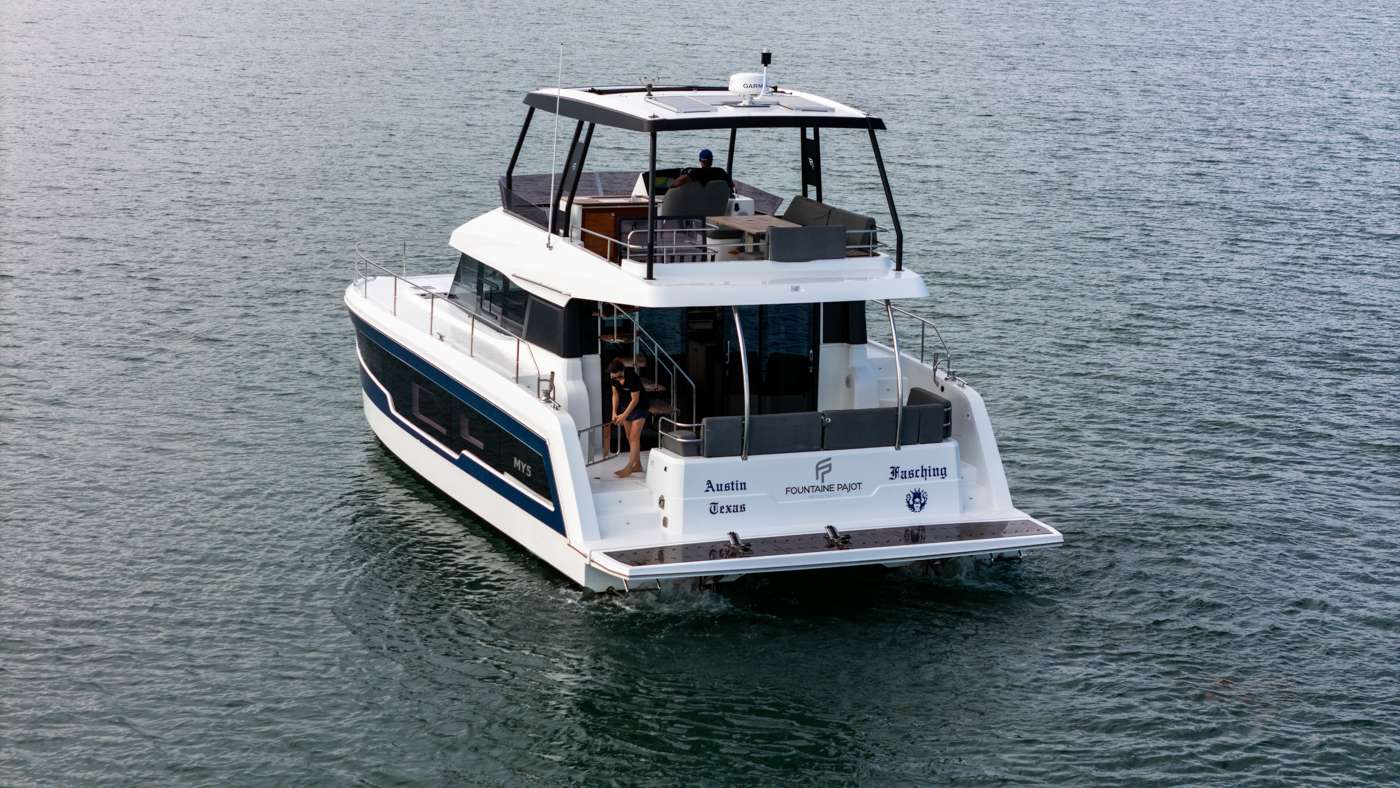 FASCHING, a sleek Fontaine Pajot MY5 motor yacht, brings effortless luxury and refined performance to the turquoise waters of Belize. At 42 feet, this stylish power catamaran is perfect for up to six guests seeking a private escape with the freedom to explore—offered as a captain-only charter for a more flexible and personalized experience. Powered by twin Volvo IPS drives and featuring wave-piercing hulls, FASCHING delivers smooth, fuel-efficient cruising ideal for discovering Belize's reef-lined coastlines, secluded cayes, and vibrant marine life. Guests can relax across multiple outdoor living areas, including a spacious flybridge, aft cockpit, and a forward sun lounge designed for open-air enjoyment. Inside, the yacht features a bright, modern interior with an open-plan salon, fully equipped galley, and seamless indoor-outdoor flow. Accommodations include three beautifully appointed cabins for up to six guests, including a comfortable master cabin with private en-suite bath. Whether you're chasing sunsets, snorkeling vibrant reefs, or simply unwinding on deck, FASCHING offers an unforgettable way to experience the natural beauty of Belize—with comfort, performance, and captain-guided ease. ***Photos in this brochure of the vessel are a mixture of stock and actual vessel photos. Charter ready photos coming soon***