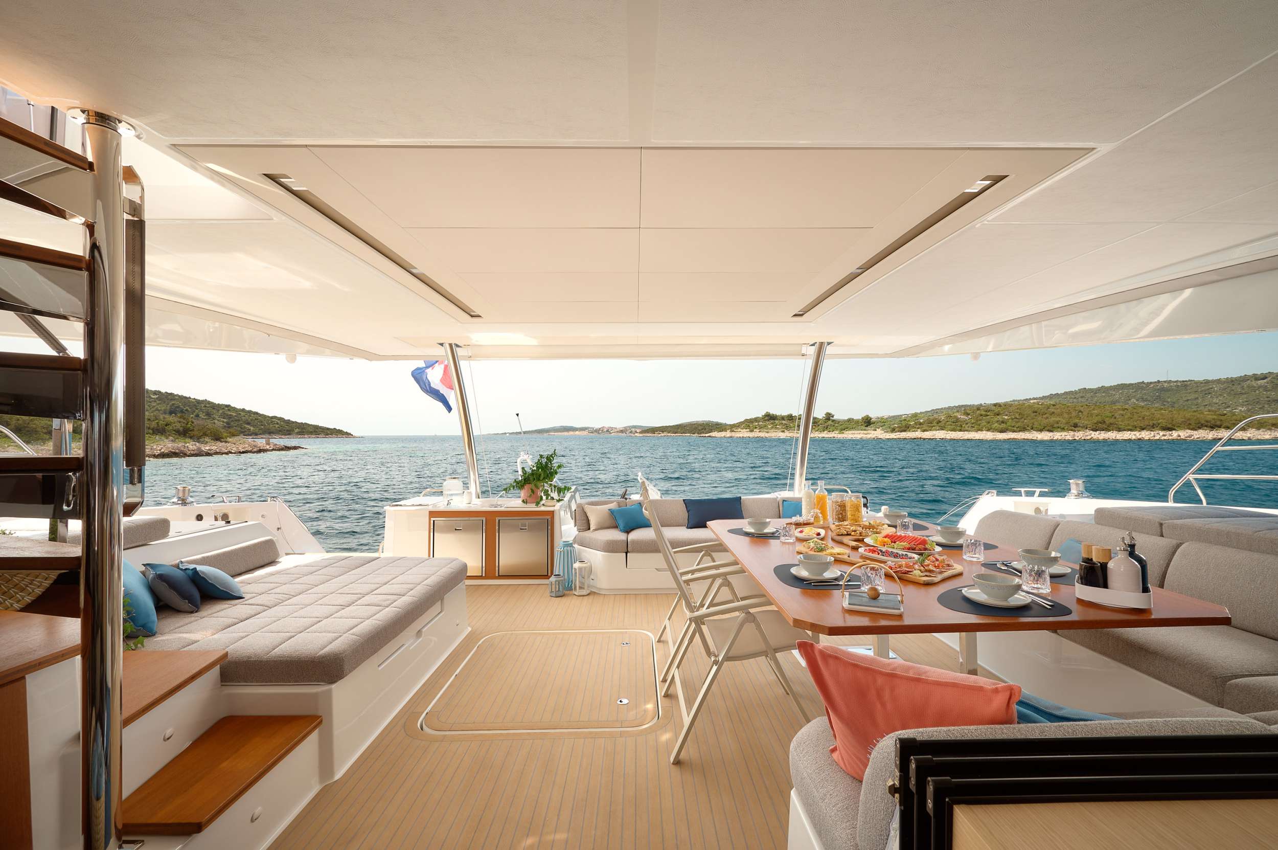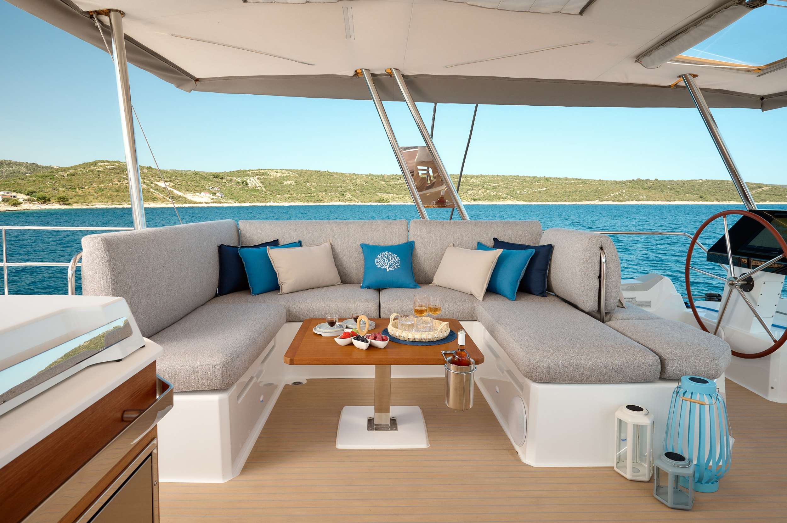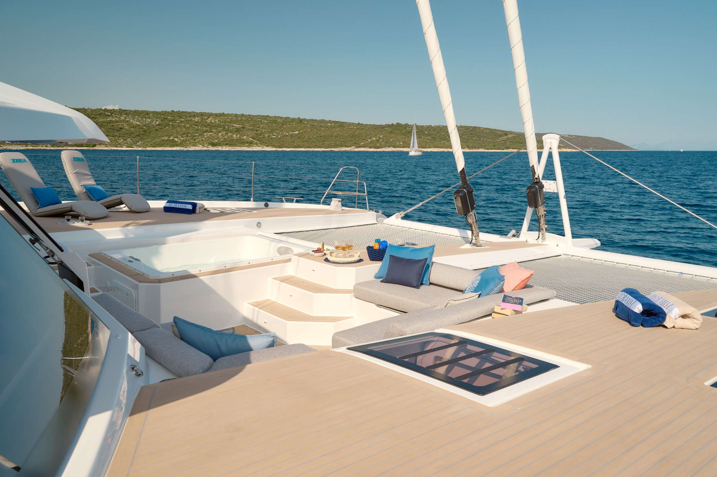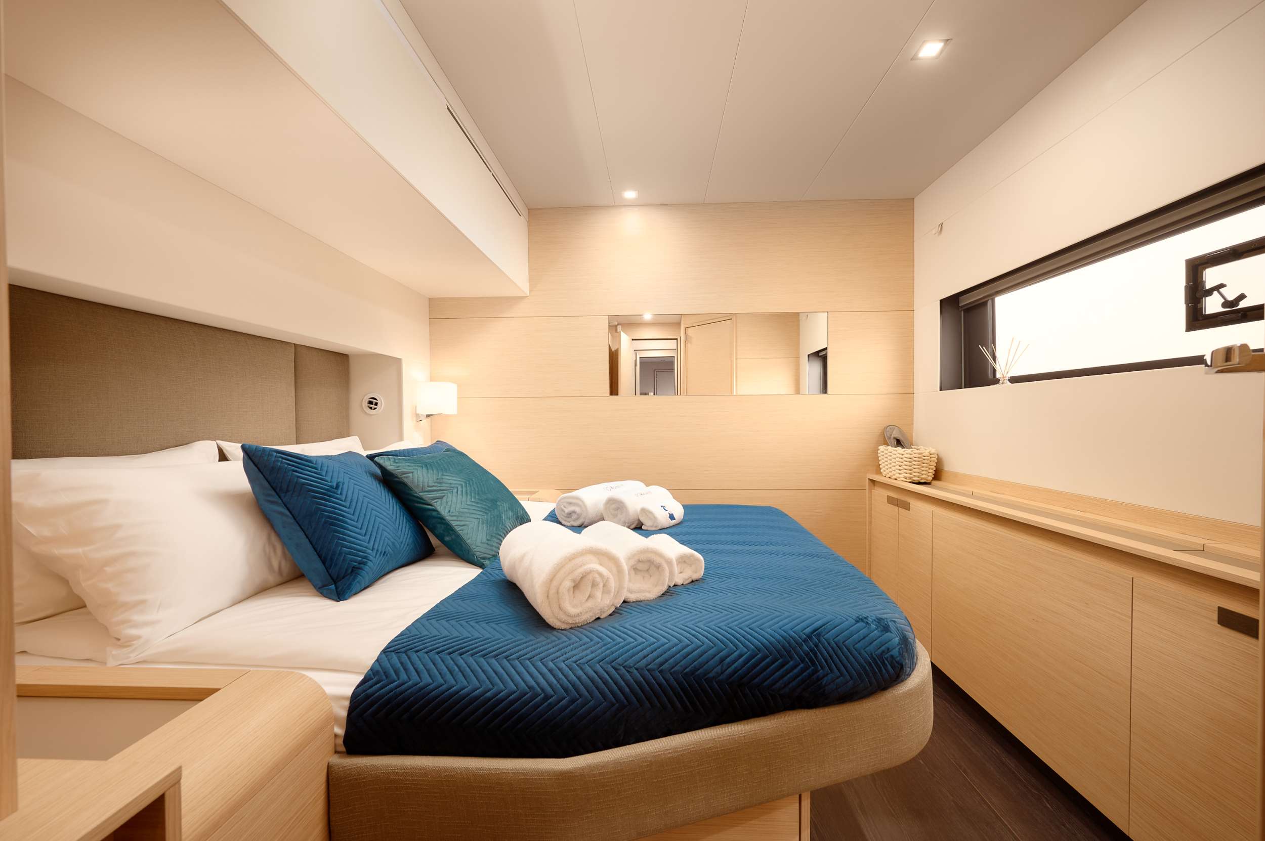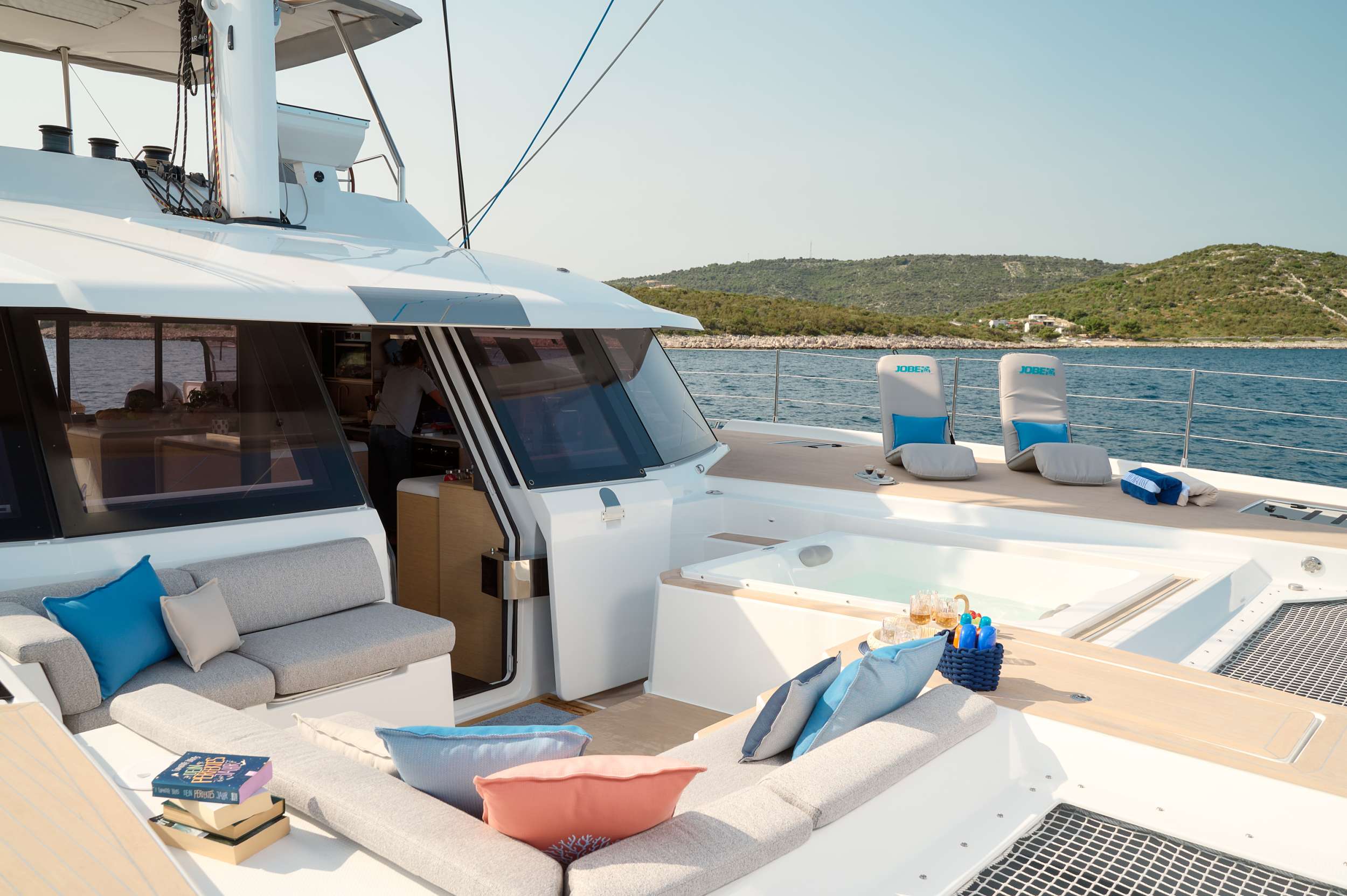 FLORAMYE is the first Fountain Pajot 67 permanently based in Croatia, with experienced local crew. FLORAMYE is available to charter from late May 2025. The name FLORAMYE comes from a charming operetta Mala Floramye by Ivo Tijardović, a talented Croatian composer. Written in 1926, Tijardović masterfully blended romance, humour, and a touch of drama, all while celebrating the unique spirit of Dalmatian life during the 1920s. This operetta is particularly special for its ability to capture the beauty of the Mediterranean, with its rich cultural nuances, traditional customs, and the romantic seafaring life. Catamaran FLORAMYE is set to live up to its name and will showcase all that Dalmatia has to offer and more. FLORAMYE has four cabins, one exceptional master suite as well as three double cabins. All cabins are equipped with queen sized beds and their own ensuite bathrooms. FLORAMYE also offers spacious living space with a large saloon with a galley and indoor and outdoor dining areas. Outside the space is just as generous; a beautiful teak deck covers most of the outdoor area. At the front, apart from the always popular trampolines, there is a lowered lounge/sitting area and a welcoming jacuzzi. The flybridge provides the perfect place to enjoy cocktails while admiring the view. Both cockpit and the flybridge offer generous areas for dining and lounging. FLORAMYE is elegant and stylish. Everything has been thought through to ensure that charterers experience utmost comfort and luxury.