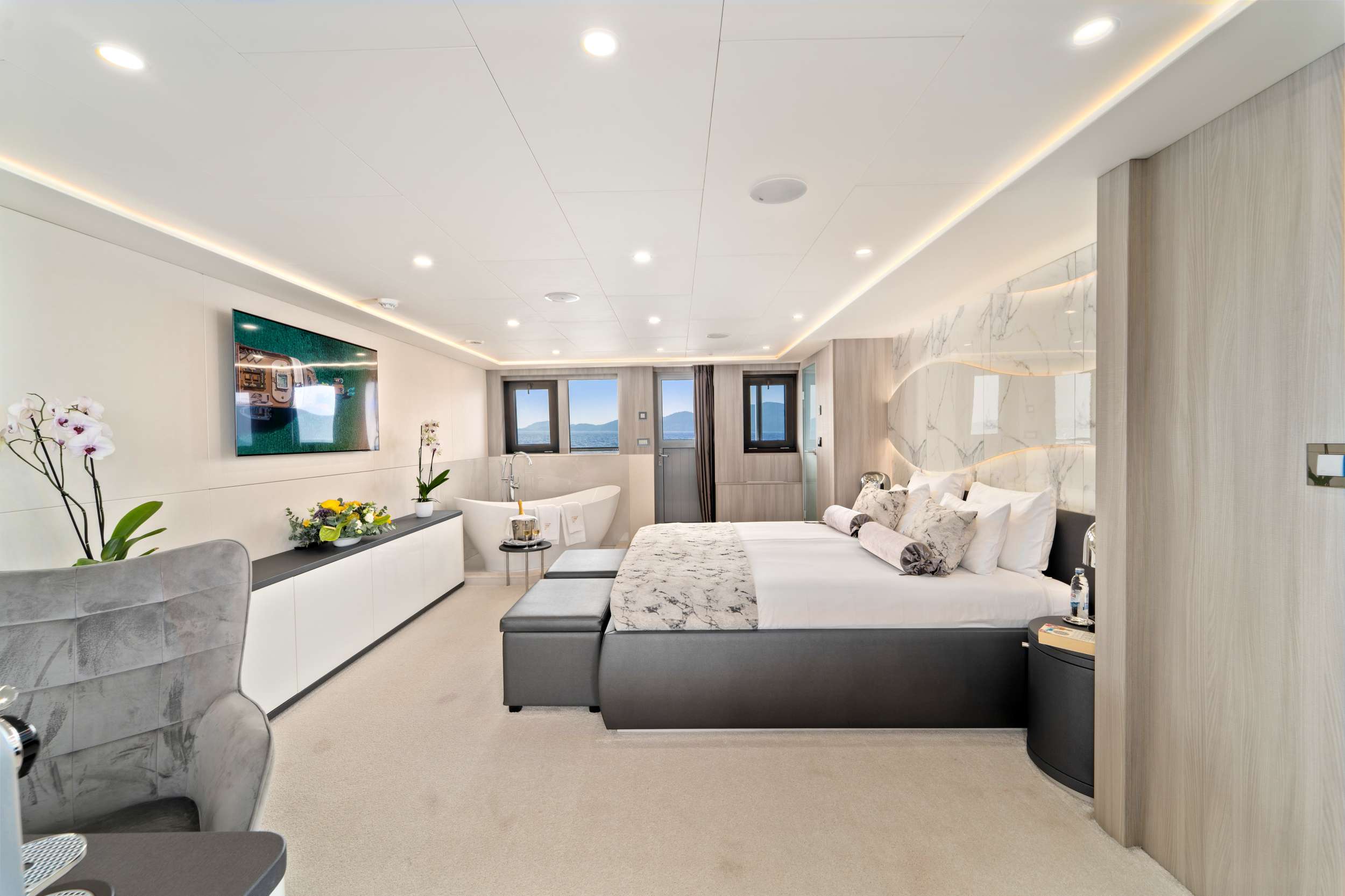 UPPER DECK: Master cabin with double bed. Private bathroom with shower box and home type toilet. MAIN DECK: Master cabin with double bed. Private bathroom with shower box and home type toilet. VIP cabin with double bed. Private bathroom with shower box and home type toilet. 4 Double cabins with double bed. Private bathroom with shower box and home type toilet. Convertible into Twin cabins with 2 single beds. LOWER DECK: Twin cabin with 2 single beds. Private bathroom with shower box and home type toilet. 3 Triple cabins with double bed and single bed. Private bathroom with shower box and home type toilet.