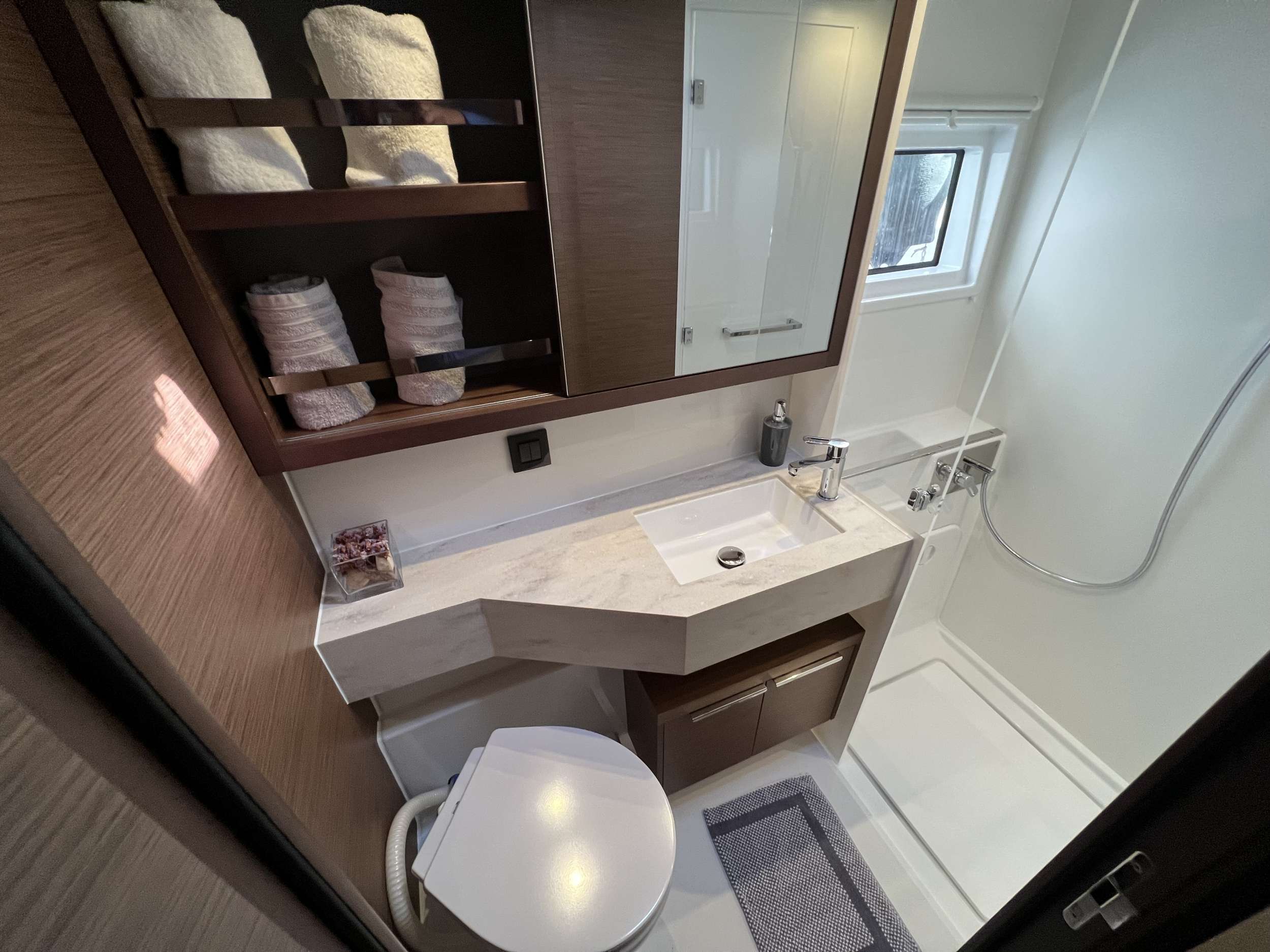 Lagoon 46 Galaxy has 4 double cabins with 4 wc(electric) 2 skipper cabins on bow with 1 w/c on one of them