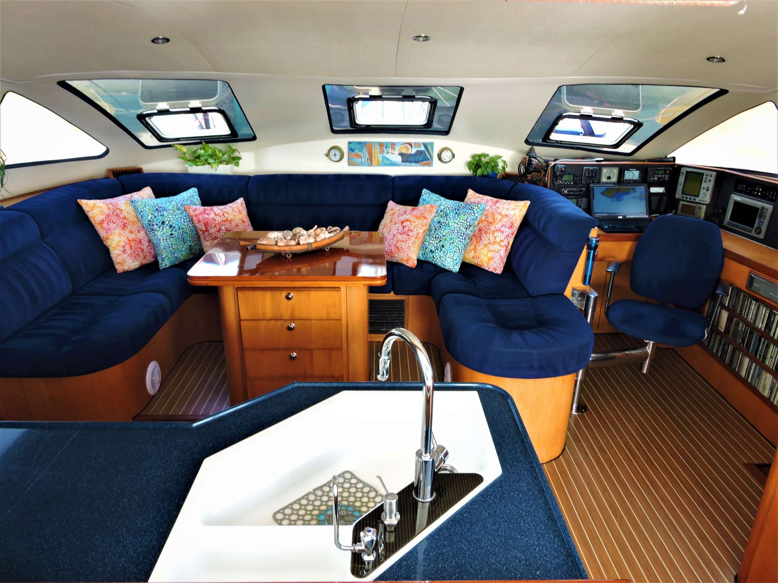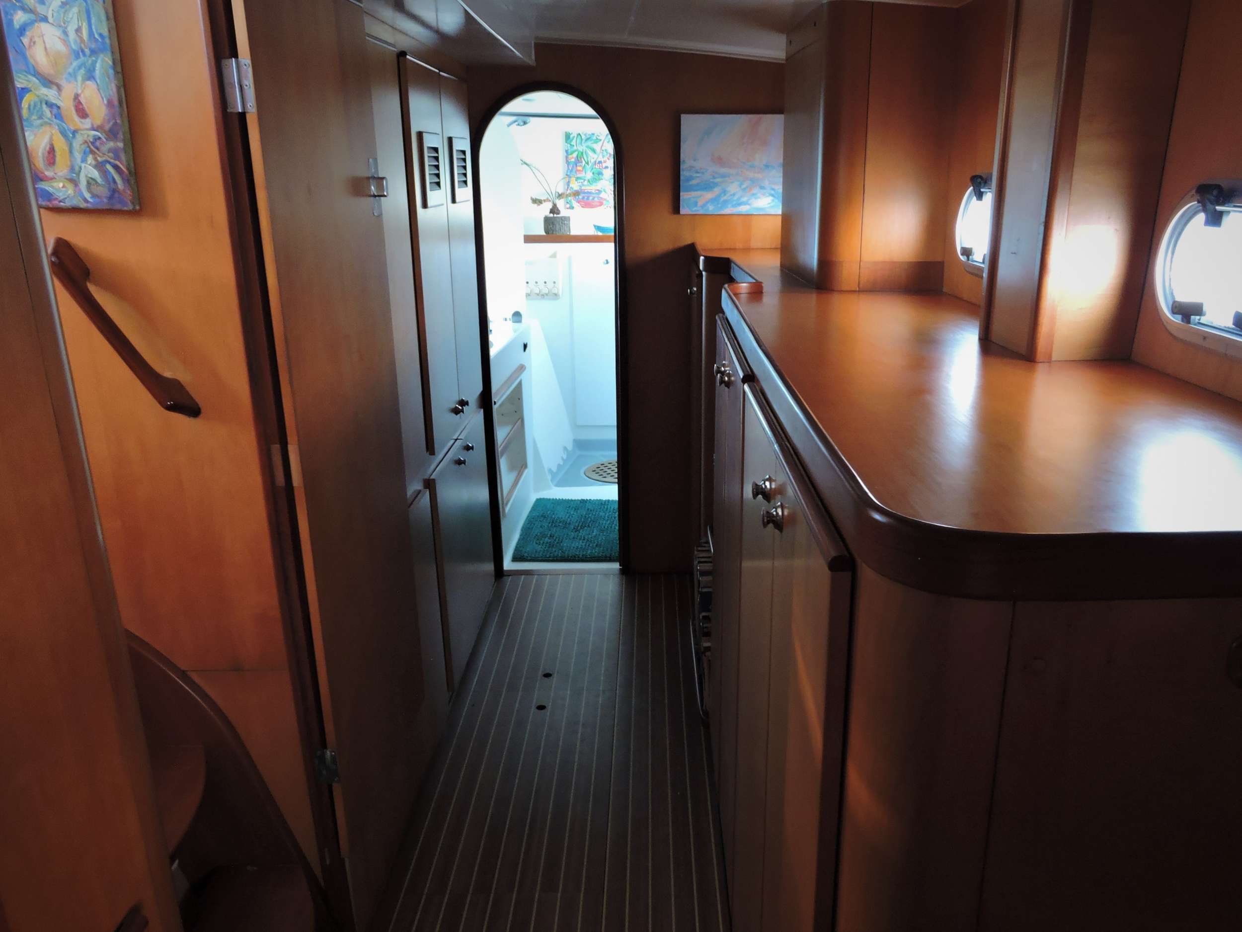 One of the hulls dedicated to the guest. King berth in aft cabin and oversized bath head/shower