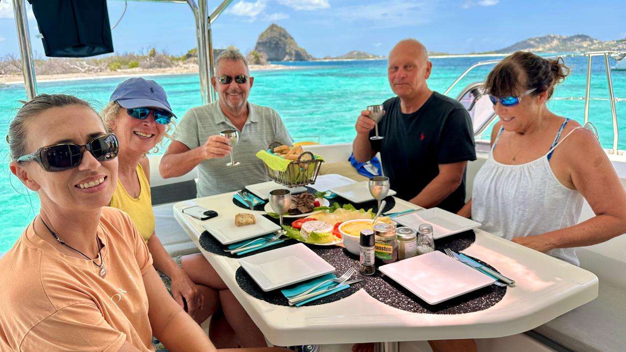 Groovy is a beautifully maintained , owner operated 44-foot Leopard catamaran offering full-board and half-board crewed charters in the heart of the Grenadines. With over a decade of experience sailing the Southern Windward Islands, the dedicated crew brings exceptional local knowledge and a warm, personalized approach to every charter. Groovy offers exceptional comfort with a shaded forward cockpit perfect for afternoon cocktails, a bow trampoline for sunbathing, and a spacious aft cockpit for relaxed dining. Inside, the open-plan saloon is bright and breezy, blending seamlessly with the outdoor spaces. The boat offers three guest cabins, each with large windows that let in plenty of natural light and scenic views, along with air-conditioning, fans, and private en-suite bathrooms. Two cabins feature queen beds, while the third has a convertible bed that can be arranged as a twin or double — ideal for children or adults sharing. Groovy is a blue water sailing catamaran, built for safety and stability at sea. She's equipped with snorkeling gear, floaties, fishing rods, two paddleboards, and a wing foil. The crew are passionate and experienced water sports enthusiasts — skilled in kite surfing, foiling, and diving — and enjoy guiding and teaching guests who are eager to try something new or improve their confidence on the water.