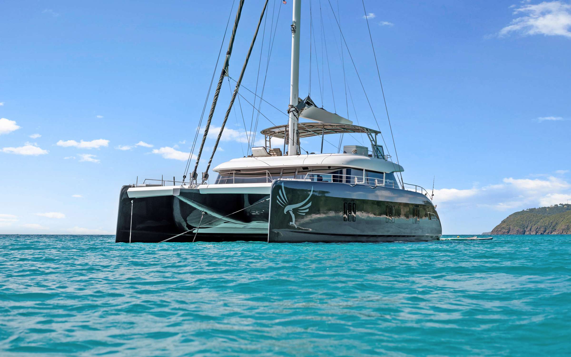 Superb and elegant, GYRFALCON is a luxurious sailing Sunreef 60 catamaran launched in 2019. Destined for sailing adventures in ultimate comfort, GYRFALCON boasts a combination of exterior and interior areas easily flowing into one another. Her smart and well-designed layout offers sumptuous accommodation for 10 guests. Perfect to unwind and relax after a long day in the sun, five elegantly appointed en suite cabins with comfortable queen beds are designed in a soothing white and grey colour pallet. A generous salon combined with a functional galley opens both onto the bow terrace and cockpit creating one huge lounging area. Decorated with bright powder blue accents, the saloon is equipped with a big unfoldable table and comfortable seating for 10, allowing guests to dine in comfort and relax in a homelike atmosphere. GYRFALCON features exterior spaces that are impressively vast and perfectly equipped for an unforgettable charter experience. The yacht's flybridge is ideal for revelling in pleasant sea breeze and spectacular views. Fitted with large sun pads, coffee tables, pouffes and a bar, it is the ultimate place to spend relaxing afternoons. Guests will also enjoy an additional terrace in the front benefitting from a cosy lounge which can be shielded from the sun. Operated by three outstanding crew members, GYRFALCON gifts an unparalleled experience in the world's most attractive yachting destinations.