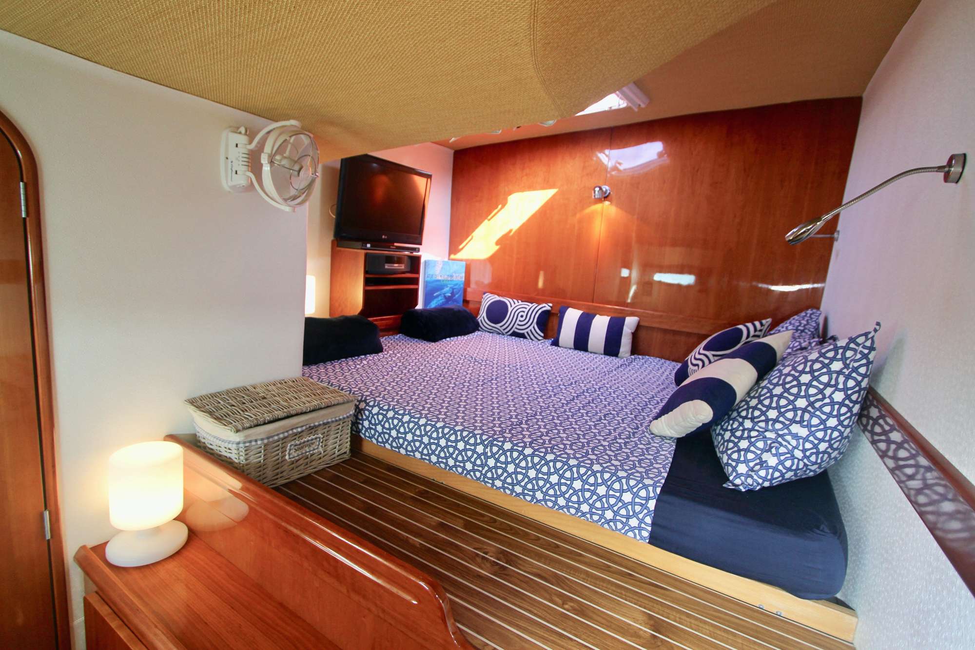 The three guest queen cabins are roomy and well-ventilated. Each is equipped with an individually controlled digital thermostat to ensure the perfect temperature. The large beds measure 5.2 x 6.6 ft and are bedecked in fine linens. The port forward cabin has its own private bathroom with shower, toilet and sink. The starboard forward cabin has a large shower cubicle, and shares the toilet with the rear starboard cabin, which is situated in the private companionway, outside of the forward cabin. The rear starboard cabin has its own shower cubicle, in the same private companionway, and shares the toilet with the forward cabin in the same location. Accommodations are perfect for a romantic getaway, friends, or a family. Guests enjoy real comfort, great privacy, generous social spaces and the feeling of being at home.