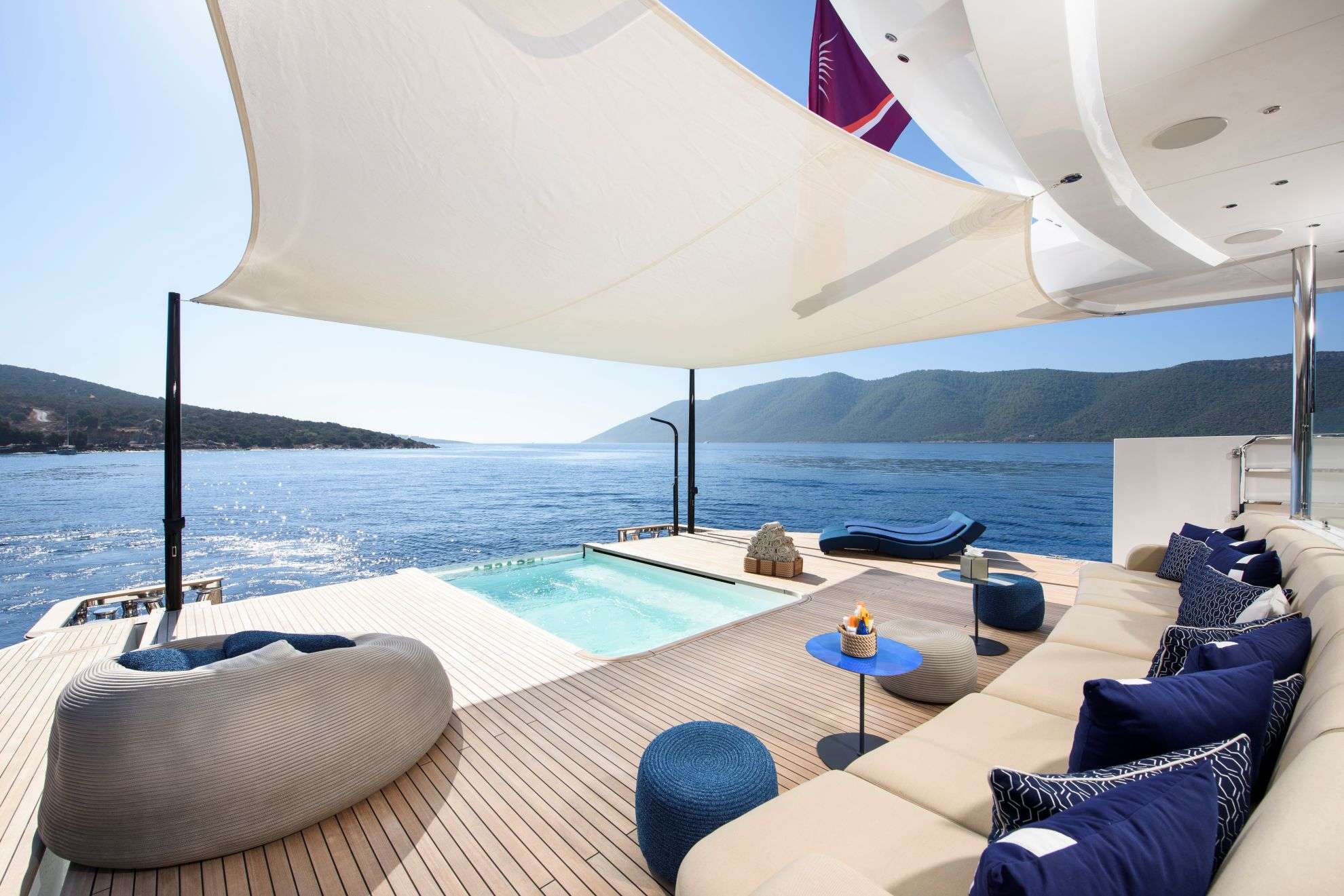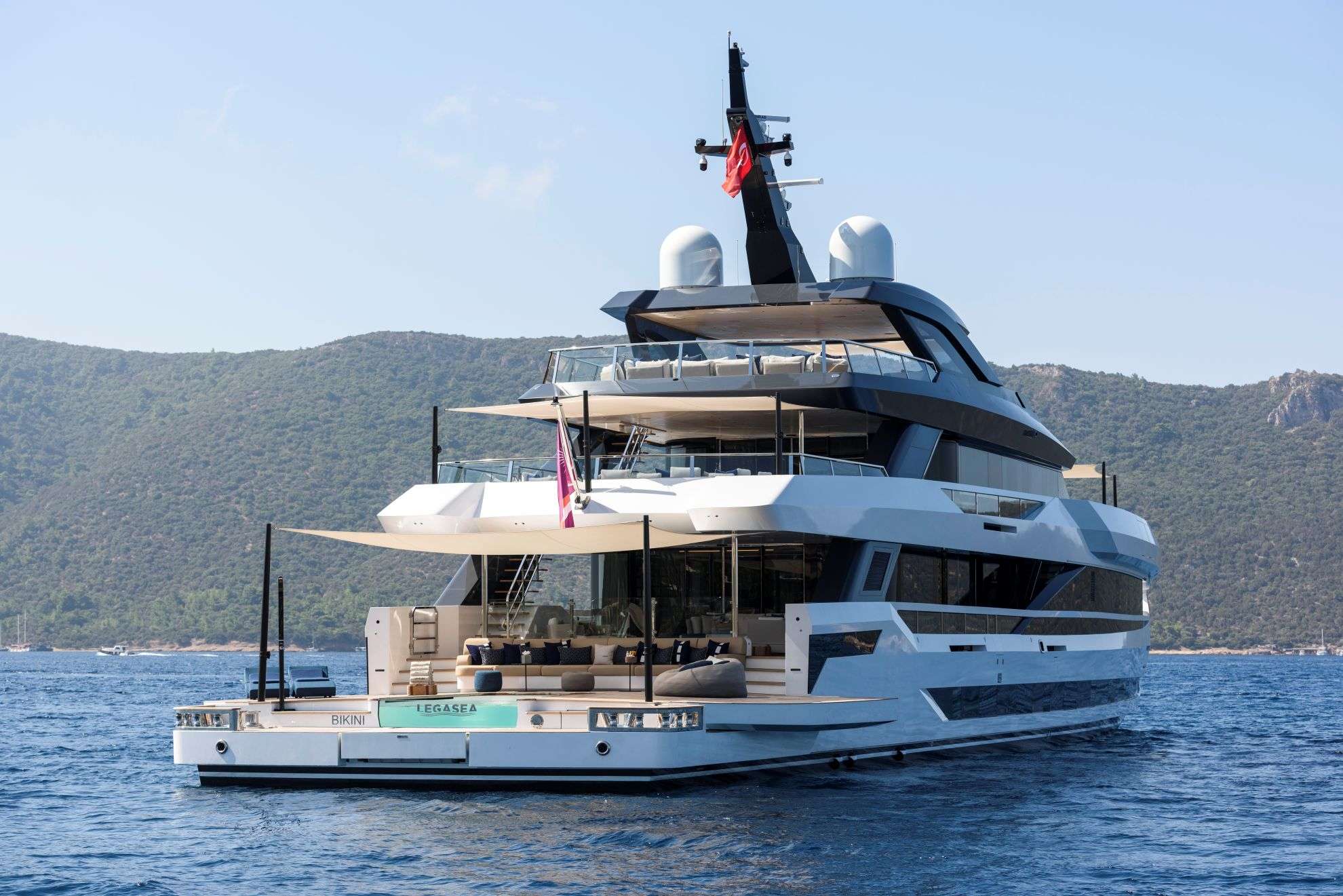 LEGASEA The New 50-Meter ADA Yachts Model 2025 The stunning new 50-meter superyacht by ADA Yachts is making her debut in the luxury charter market for the 2025 season. Designed with sleek, modern lines and an exquisite Italian interior by Luca Dini's Florence-based studio, she seamlessly blends contemporary elegance with ultimate comfort. LEGASEA's spacious aft decks invite guests to embrace the alfresco lifestyle, featuring a spectacular beach club with a plunge pool, extendable hydraulic wings, a rich toy collection, and a 14-meter new chase boat. A Jacuzzi, located on the foredeck, surrounded by sun pads for perfect relaxation. With 500 GT of interior volume, LEGASEA accommodates up to 12 guests in 6 luxurious suites. The owner's suite, located on the main deck, with a private balcony, a Jacuzzi, and breathtaking panoramic views. Five well-appointed guest suites on the lower deck ensure an intimate and comfortable voyage for all guests onboard. In 2025, LEGASEA will be cruising the East Mediterranean, offering an unparalleled luxury experience at sea.