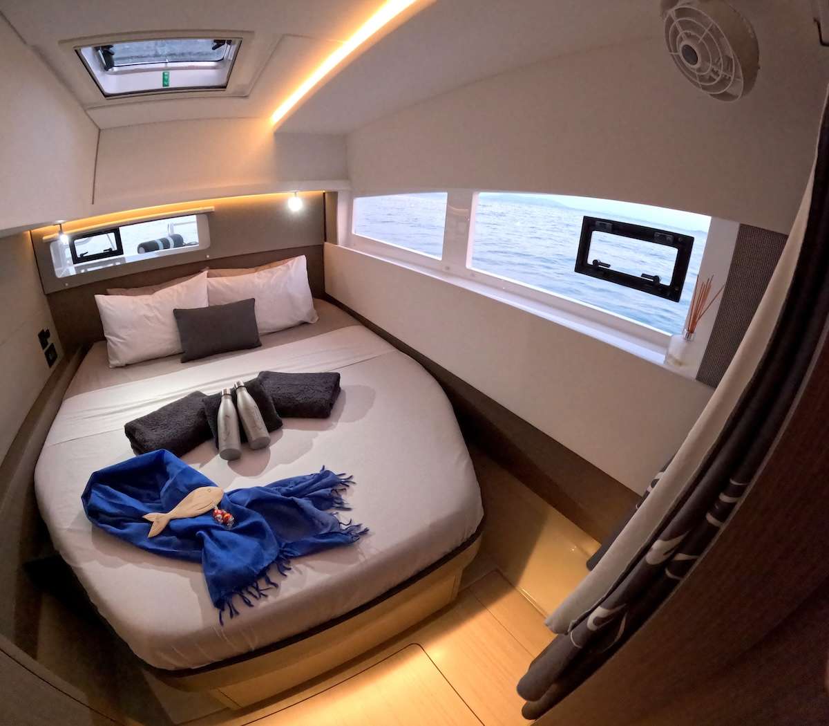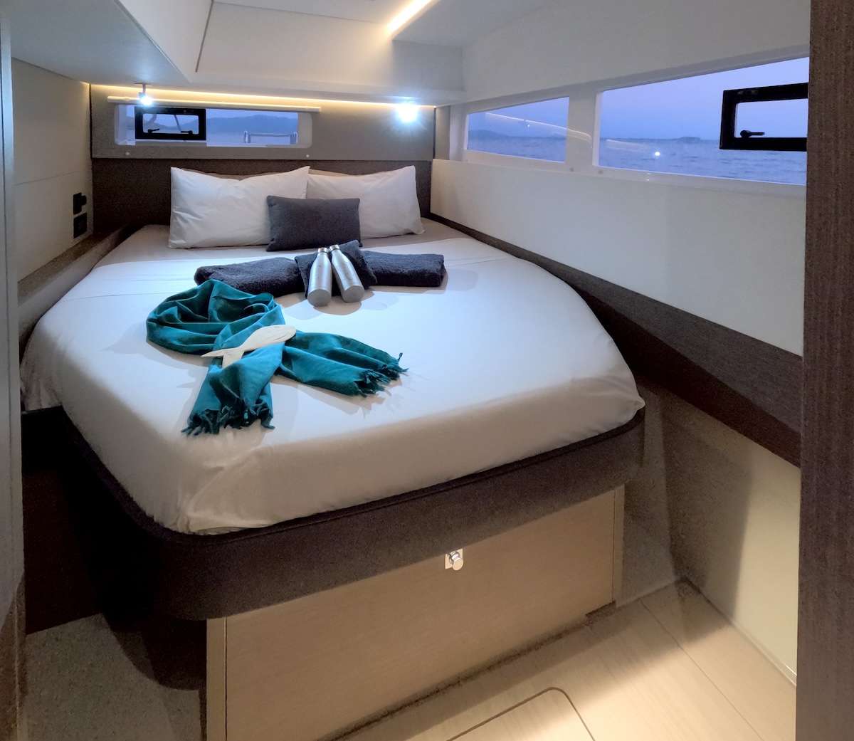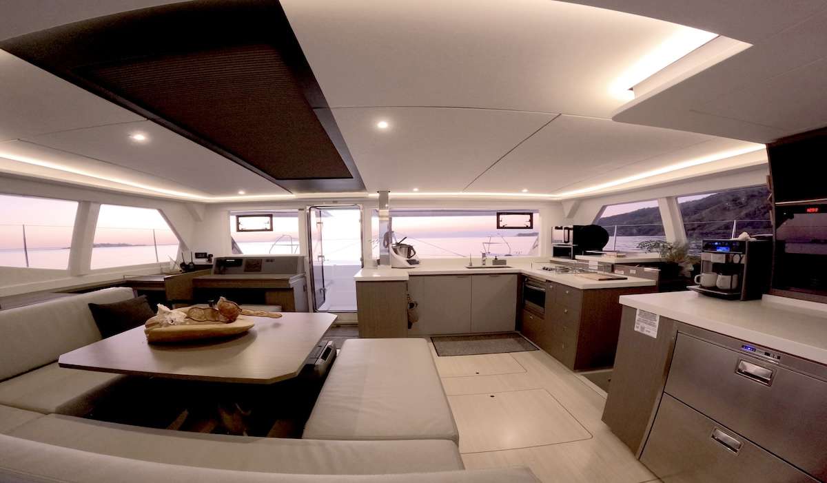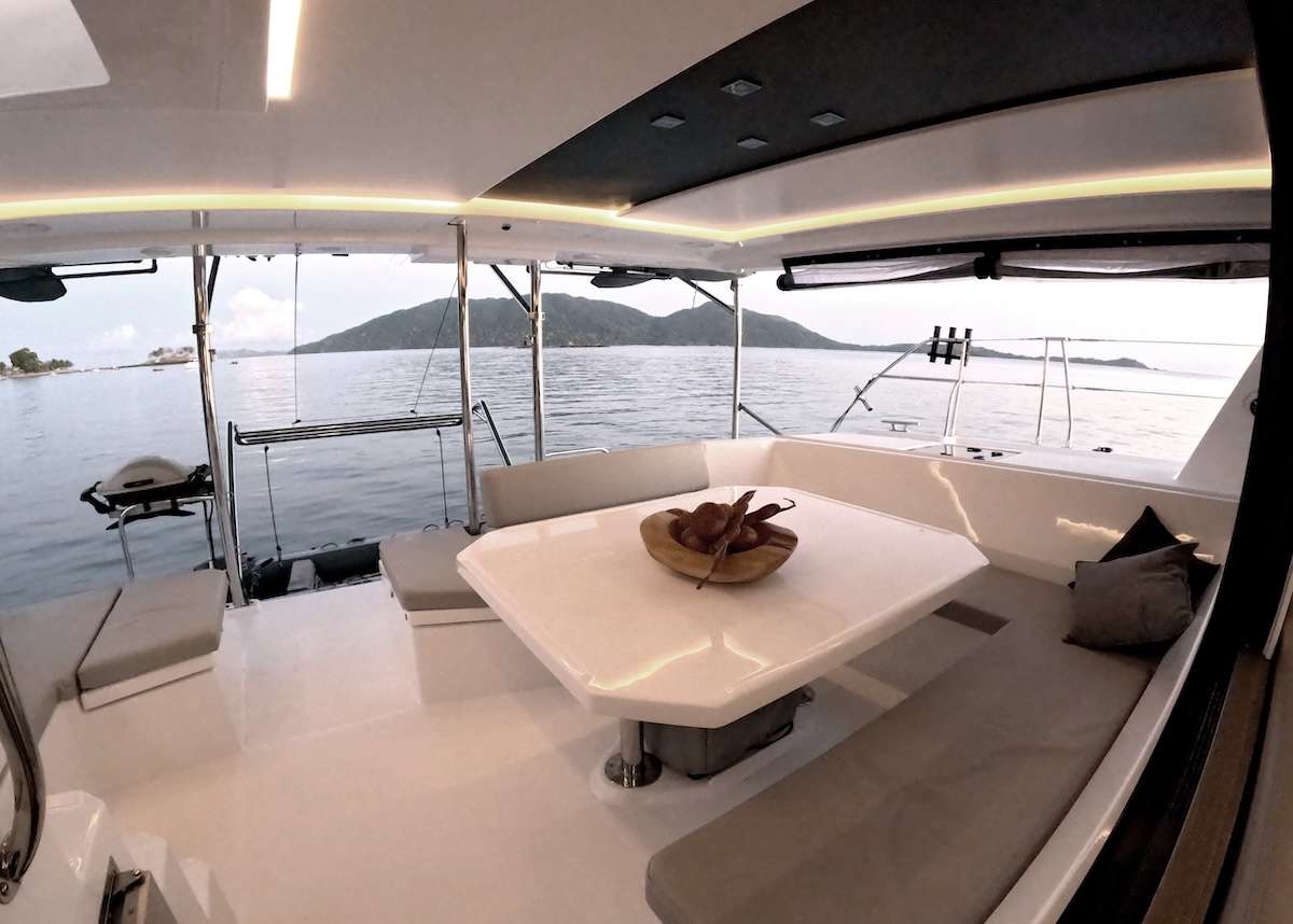 Liquid Coconut is a stunning Leopard 45, launched in 2023, embodying Leopard's reputation for spaciousness, sturdiness, and remarkable sailing performance. The latest design upgrades provide a perfect balance of comfort and convenience for both crew and guests. The fully opening sliding doors of the main saloon create an expansive, uninterrupted flow between the aft cockpit and the salon, allowing guests to enjoy the yacht's generous space to the fullest. The yacht's air conditioning system can run solely on battery power, ensuring quiet, restful nights without the hum of a generator. What truly elevates the Liquid Coconut experience is the outstanding crew: Kemble and Lindi, known for their exceptional hosting skills and numerous delighted guests. Their fun-loving personalities and expertise in watersports make every voyage memorable. Kemble, a dive master with proficiency in surfing, kitesurfing, and wingfoiling, ensures adventure at every stop, while Lindi's passion for snorkeling and culinary expertise delights with a blend of modern, healthy, and locally-inspired dishes. Liquid Coconut also explores off-the-beaten-path sailing destinations, including the unique waters of Zanzibar, where guests can enhance their sailing adventure with an unforgettable safari expedition.