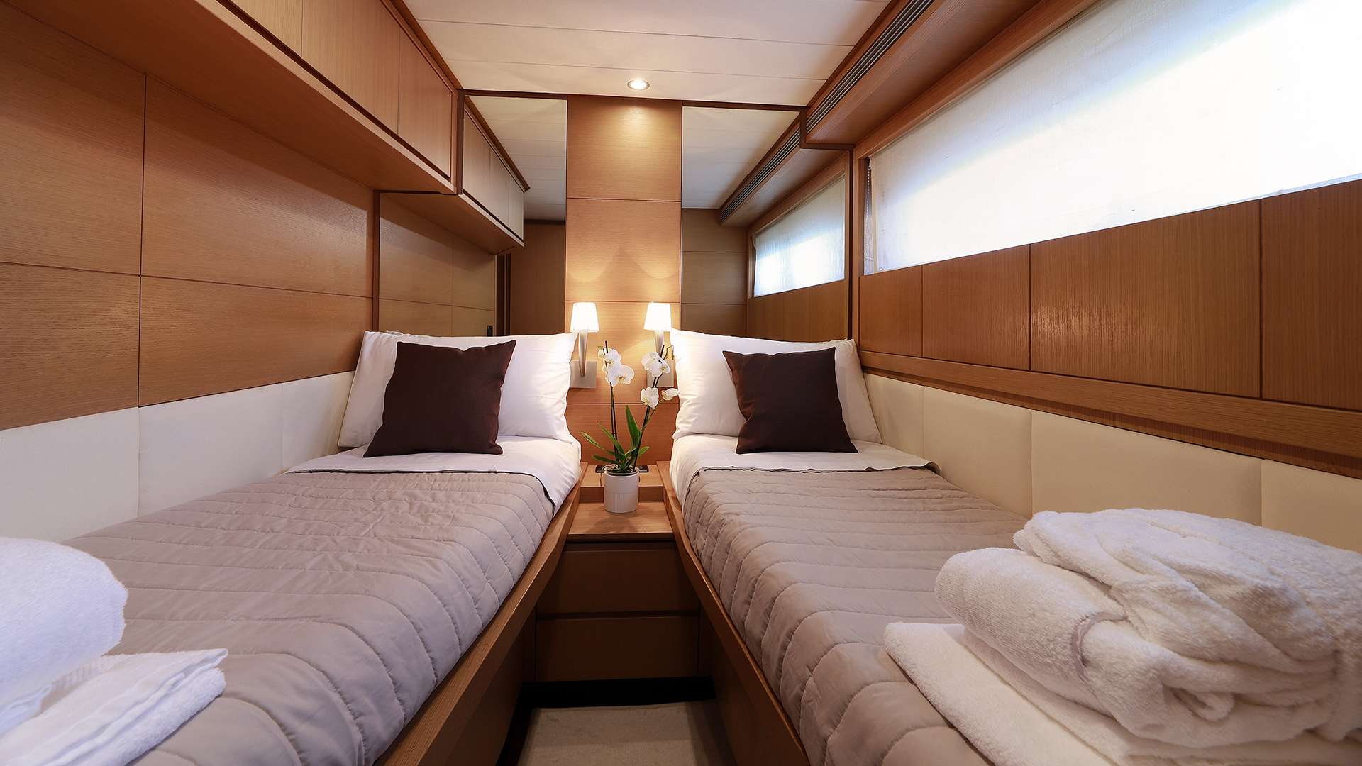 4 en suite cabins: - Master double bed cabin - VIP double bed cabin - Guest twin bed cabin - Guest twin bed cabin convertible into double