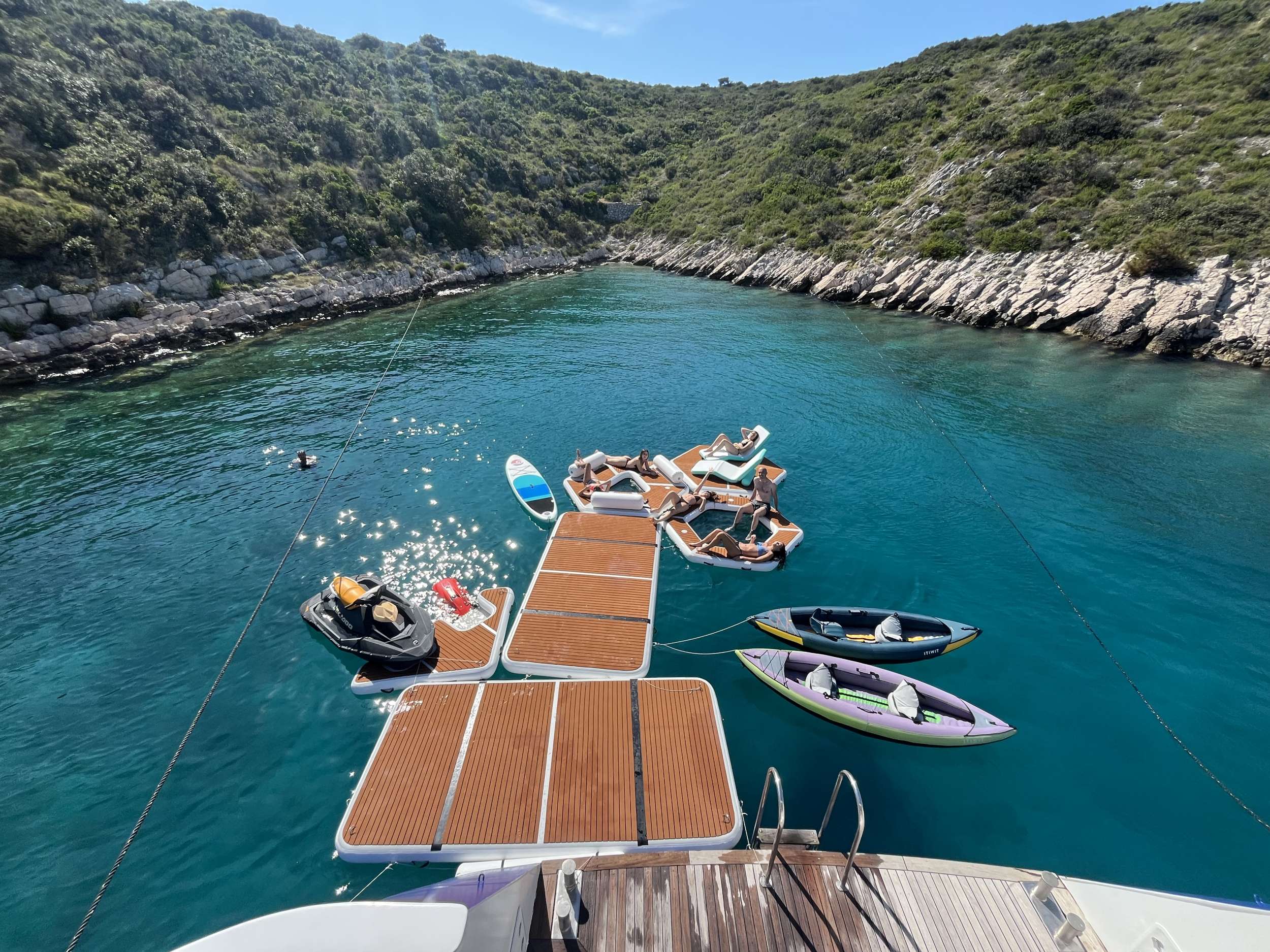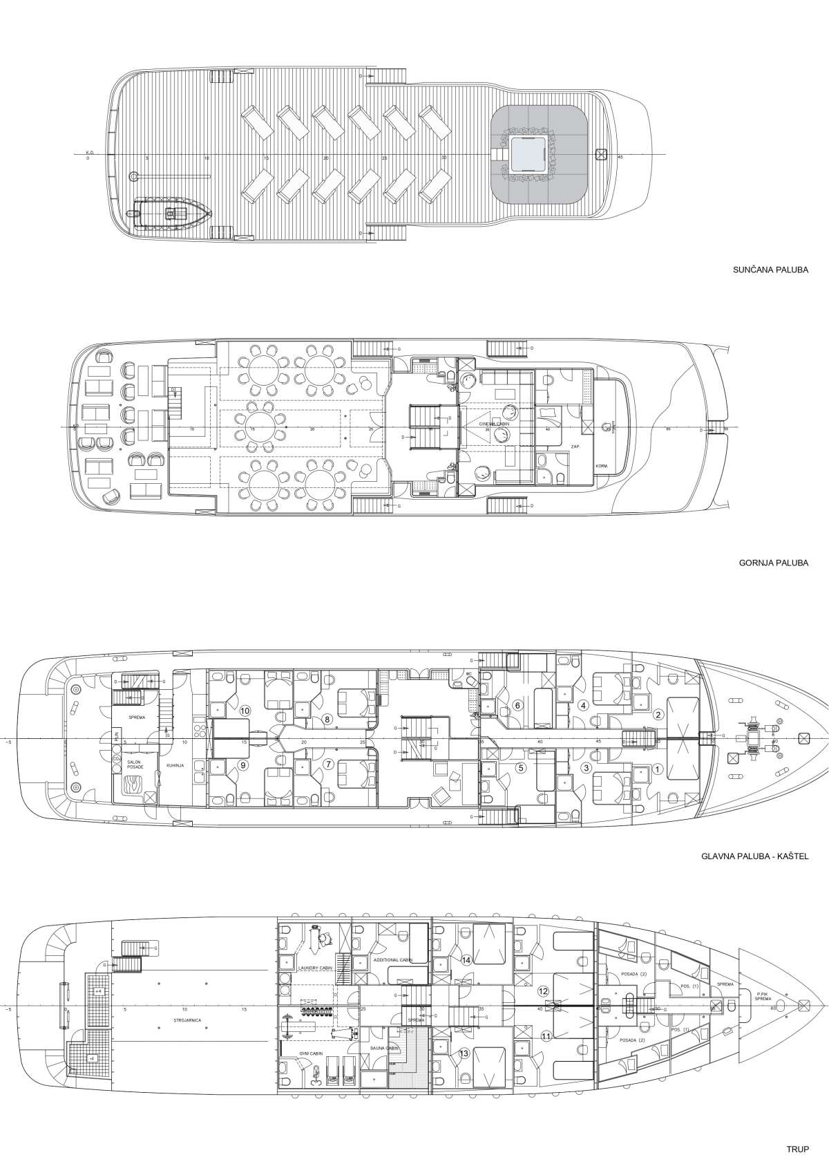 M/Y Lupus Mare is designed for providing an adventurous yachting experience and offering a top-notch service to all those in search of a stunning getaway along the Adriatic coast. Hosting up to 34 guests*, the yacht consists of 15 modern en-suite cabins, vast & elegant interiors filled with numerous amenities such as SAUNA, GYM & CINEMA ROOM and large outside spaces equipped with jacuzzi on sundeck and many lounges designed for your perfect leisure time. Yacht is managed by a skilled local 10-crew team. *there are 4 triple cabins with additional beds, so maximum capacity can be up to 34 guests