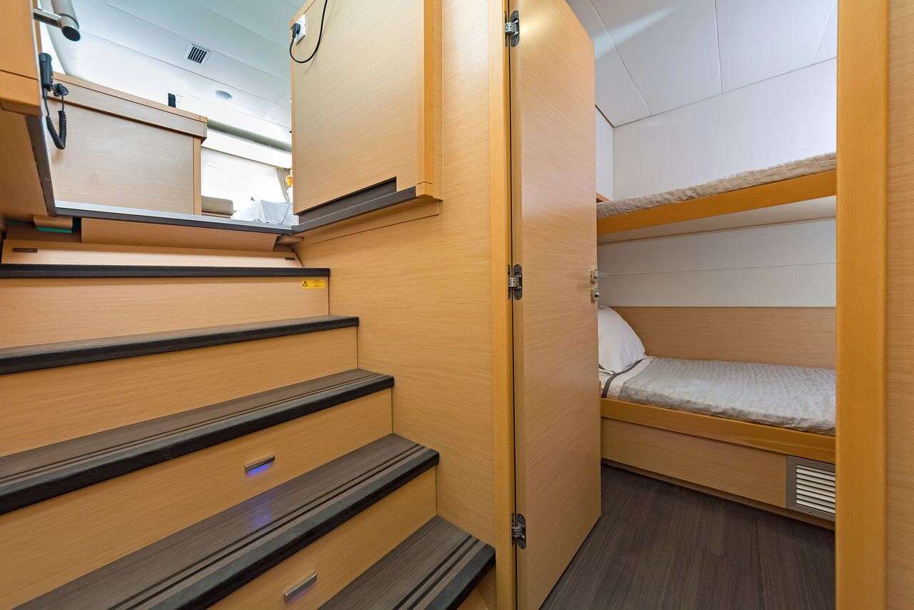 Meliti is our Lagoon 560, a catamaran available for crewed charters throughout Greece. With 5 cabins and 5 wc it is perfect for groups of up to 10 guests. Meliti ‘s genealogy comes from super yachts combining the world-renowned talents of the architectural firm VPLP and the design consultants Nauta and boasting all of the advanced features developed by the famous Lagoon Shipyard in one luxurious deep-water catamaran that will definitely exceed your expectations in terms of comfort, handling and style! Her layout is unmatched by any other catamaran of her size and her living space is phenomenal, including 5 truly huge totally independent cabins, an impressive sense of space in the saloon and galley, ample lounging space on the flybridge and more roominess than you could ask for dinning and lounging in the vast aft cockpit. Indulge yourself in the art of hospitality on a yacht considered by many the ultimate voyager's catamaran!