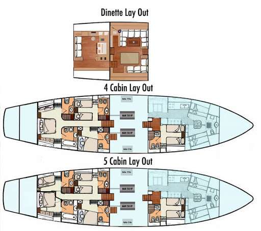 MY LOTTY has the possibility to convert the rear cabin in 2 cabins, both with own facilities. In case of 8 guests, the aft cabin will be very large with a double bed + 1 single bed (her & his bathroom). In case of a 9-10 pax, family group, it will be possible to transform the aft cabin in 2 double bedded cabins, or 1 double cabin + 1 single cabin.