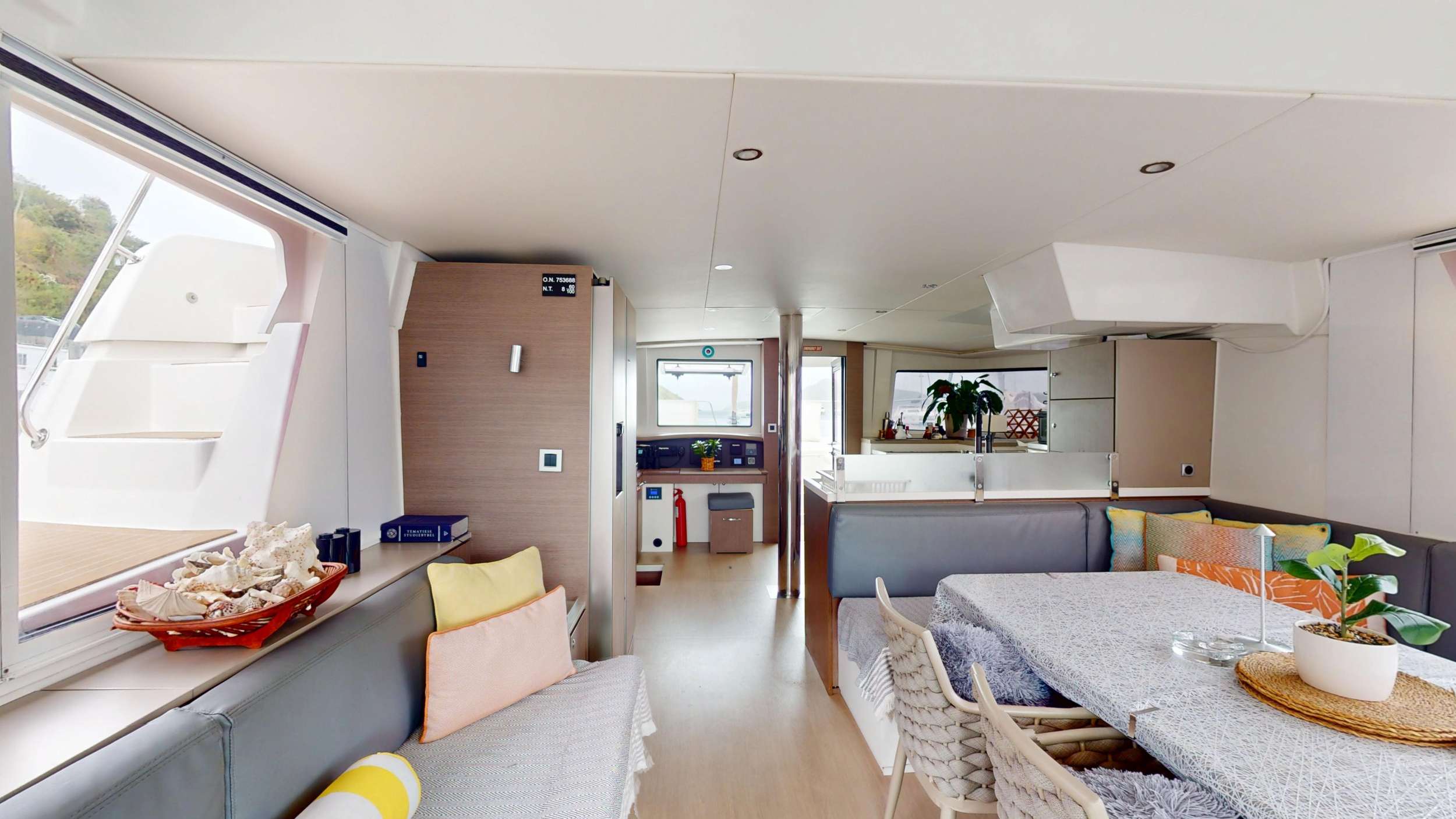 MY MARINA, a stunning 2022 Bali 48 sailing catamaran designed for spacious, comfortable, and adventure-filled charters. With accommodations for up to 6 guests in 3 luxurious en-suite cabins (2 Queens and 1 king), this yacht offers the perfect blend of relaxation and excitement. Its expansive indoor and outdoor living spaces, including a wide 24' beam, alfresco dining area, and sun loungers, provide breathtaking ocean views and seamless indoor-outdoor living. For adventure seekers, MY MARINA comes fully equipped with stand-up paddleboards, snorkeling gear, a trolling and jigging fishing setup, and an electric boarding ladder, ensuring unforgettable water experiences. After a day of exploring, unwind with a BBQ under the stars, onboard WiFi, a premium music system, and a projector for outdoor movie nights. With a dedicated captain and crew ensuring a seamless and tailored charter experience, MY MARINA is the perfect escape for those looking to sail in style, comfort, and adventure.